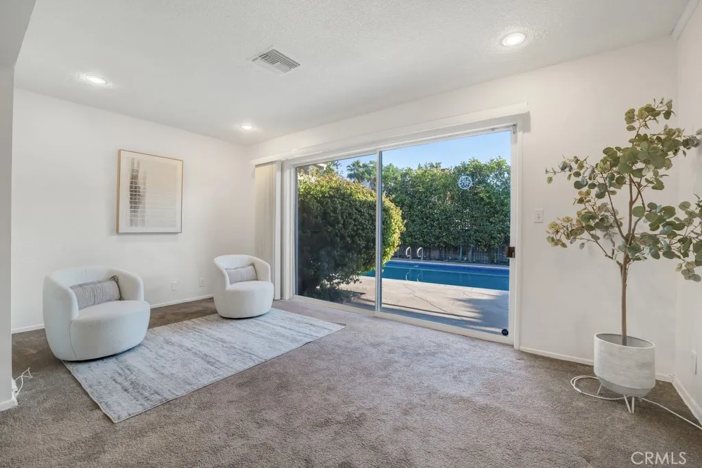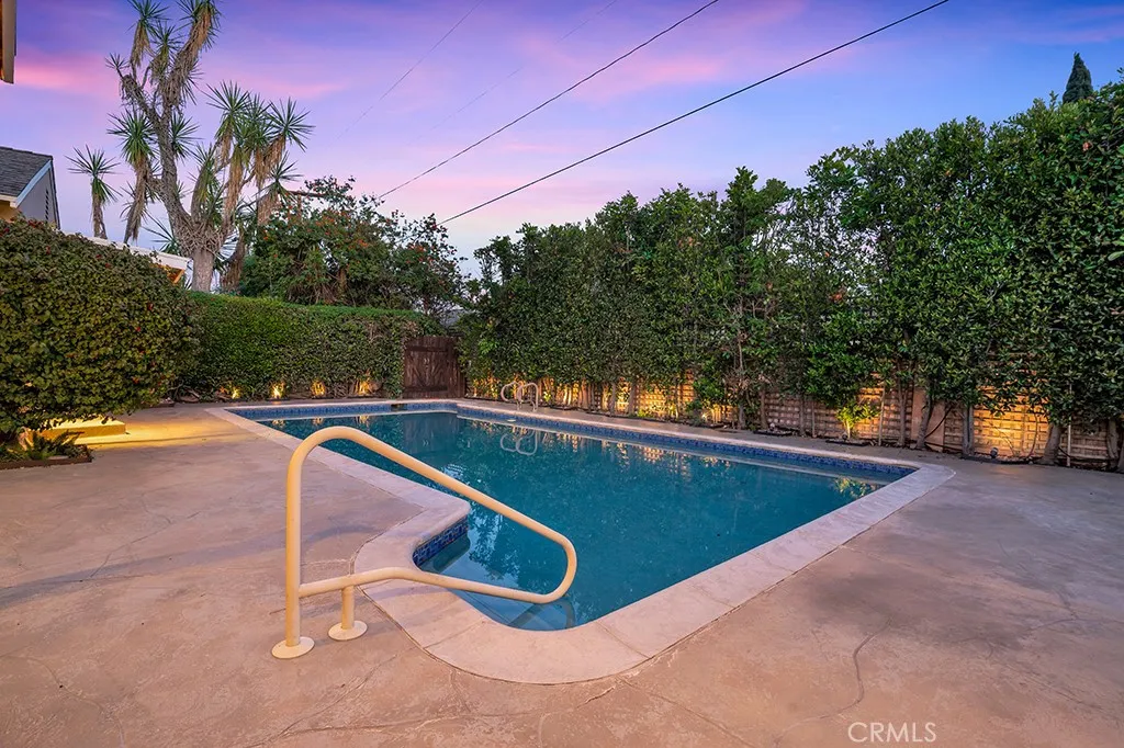 Welcome to 12312 Erwin Street Valley Glen Living at Its Finest Nestled in the heart of the highly sought-after Valley Glen neighborhood, this stunning 3-bedroom, 3-full-bath ranch-style home makes an unforgettable first impression. A sweeping brick-accented driveway curves gracefully to the front, flanked by vibrant gardens bursting with color, mature trees, and a lush lawn kept green year-round by a built-in sprinkler system. The warm red Dutch door with glass panels is your first hint at the character that waits within. Step inside to a welcoming foyer with rich hardwood floors and a warm gold flush-mount fixture setting an elegant tone. The formal dining room impresses with a statement gold chandelier, gorgeous hardwood floors, and a charming diamond-pane window designed for special occasions. The charming kitchen features white shaker-style cabinetry, black hardware accents, generous counter space, and a sunny breakfast nook perfect for morning coffee. A dedicated laundry room with utility sink adds everyday practicality. The expansive living room features a classic brick & stone fireplace, track lighting, and a large sliding glass door framing sparkling pool views a room made for gathering and making memories. The separate den opens directly to the backyard, ideal as a media room, playroom, or casual retreat. The private office boasts stunning custom built-in cabinetry, shelving, and hardwood floors an inspiring workspace that easily doubles as a 4th bedroom. The primary suite is a true sanctuary with direct sliding glass door access to the pool and backyard. Two a