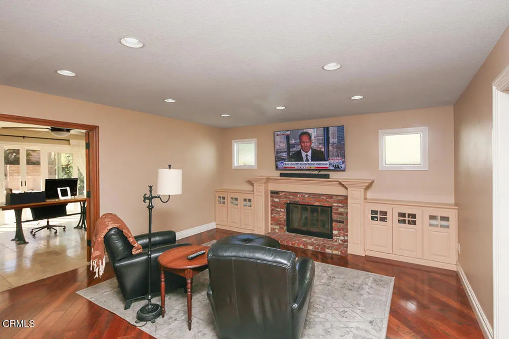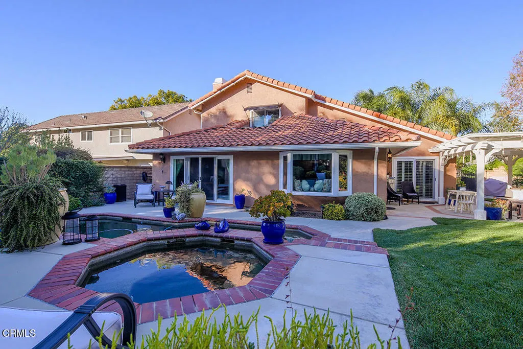 This immaculate home is what you've been looking for with 3 bedrooms, 2.5 baths boasting over 2,300 sqft of stylish living space. The highly sought after El Dorado neighborhood in Plum Canyon has no Mello-Roo's obligations nor HOA fees. Owned by the original owner this home is being offered for sale for the first time. As you approach, the lush grass and perfectly landscaped front yard immediately capture your attention, hinting to the tranquility within. Enter into a light and bright formal living room with high ceilings and large windows. The Mannington Washington Cherry hard wood floors catch your eye as you move towards the wowing kitchen with large center island and granite countertops. Center island is even equipped with warming drawer and is perfect for the cooking enthusiast. All kitchen appliances are all under 3 years old and kept as new. Kitchen area is well lit by natural sunlight supplied by a large bay window that gazes out on the great pebble tech, gas heated, pool and spa combo. Family room adjacent to the kitchen has a custom wood built in entertainment center surrounding the brick fireplace and through a pair of Oak French doors one will find a large room that could be used for any such desire. The serene ambiance of this room is provided by the full view of the pool and sounds of smooth falling water from the dual spa waterfalls. This is a wonderful space for work, hobby or pleasure. Second story hosts 2 spacious bedrooms, full bath and Master bedroom and bath. Master bedroom has privacy doors separating the master bath with dual sink and vanities, shower