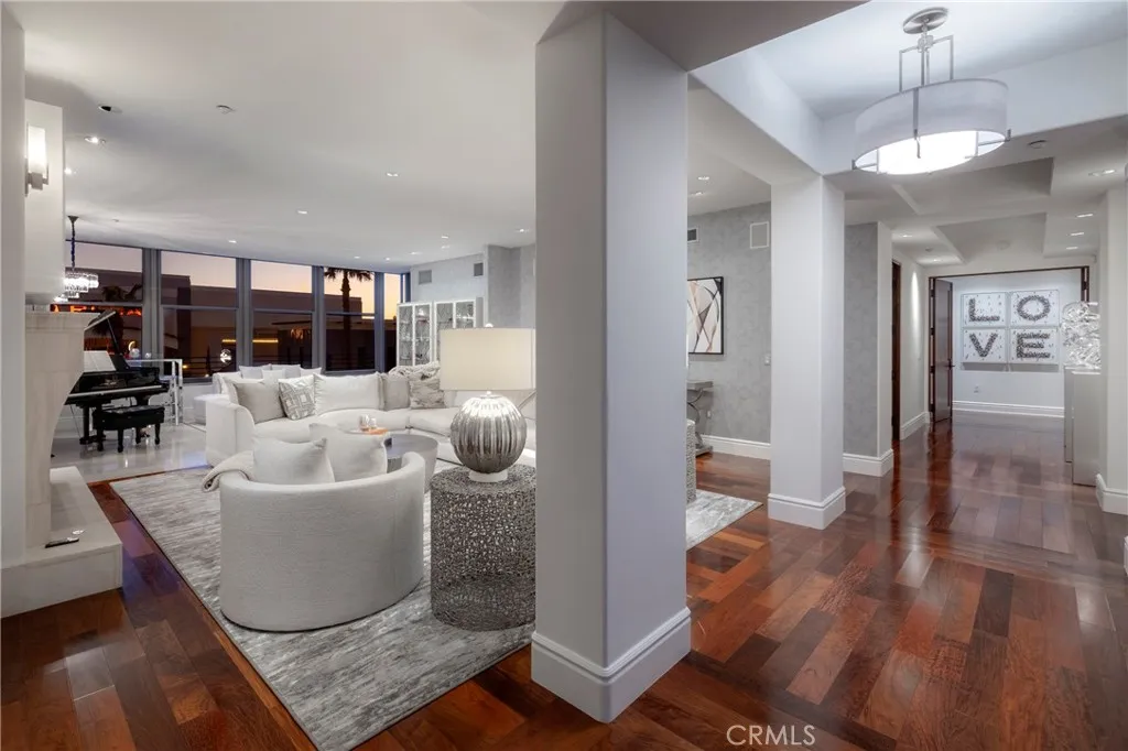 PASADENA - Experience the pinnacle of sophisticated city living in the heart of downtown Pasadena, where this opulent apartment-style residence offers panoramic views, high style and a stellar location. One of only 28 luxury condos in The Montana, a highly sought-after amenity-rich mixed-use building, this extraordinary single-level home hosts four bedrooms, and office/den with wet bar, and four- and one-half baths in approximately 4,135 square feet. Every detail is superb, including custom wall treatments, contemporary designer lighting fixtures, wood and natural stone flooring, 10' ceilings, solid stained-wood interior doors, custom paint, and a gallery-style grand hall with recessed barrel ceiling treatments. City views catch the eye upon entry in the formal foyer, which leads to a fireplace-warmed great room with surround sound and a stunning solarium that frames south-facing views of city lights. Open to a casual dining room, the kitchen is top-tier and features granite countertops with full backsplash, dark-stained wood cabinetry, a peninsula bar, island, pantry, and stainless-steel Wolf and Sub-Zero appliances including a six-burner cooktop with griddle. Secondary bedrooms are spacious, with some including an ensuite bath. For the ultimate escape, the primary suite reveals two baths with stone surrounds, and two walk-in closets with built-ins. Three parking spaces are reserved in The Montanas secured subterranean parking garage. Introduced by a dramatic atrium-style entrance, The Montana reveals a private world of modern luxury, with public spaces adorned with natura