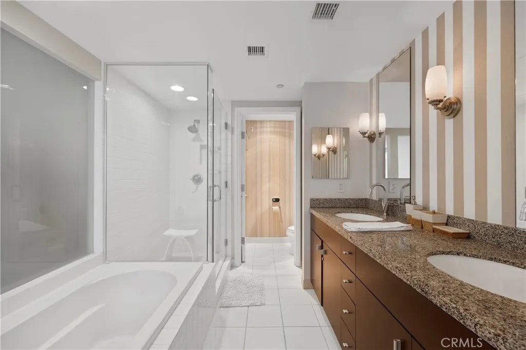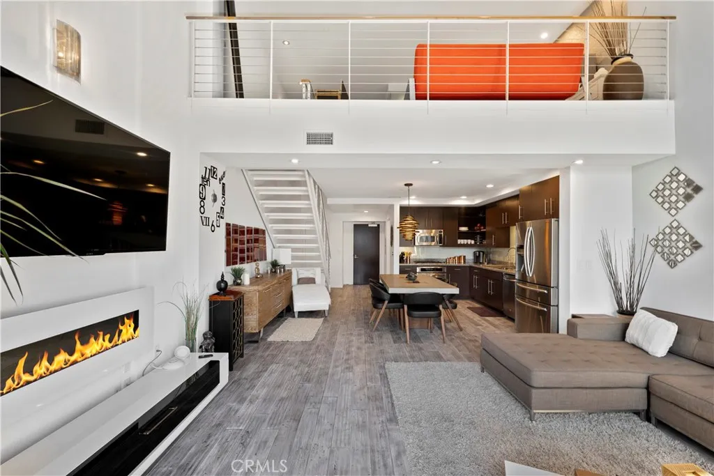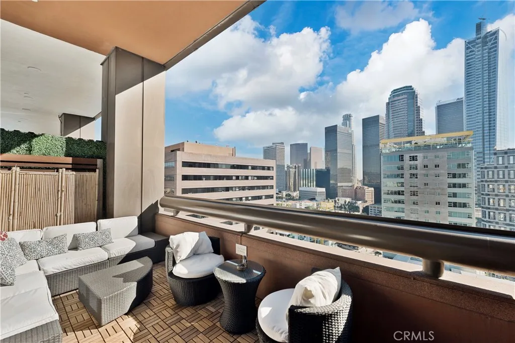 Experience rare luxury living in the heart of Downtown LA with this stunning two-story loft at 1100 Wilshire Blvd. One of only nine exclusive two-level lofts in the building featuring a private balcony, Unit 1707 offers sweeping skyline views and an exceptional indoor-outdoor lifestyle rarely found in DTLA high-rises. This 1 bed, 2 bath loft spans approximately 1,080 sq. ft., showcasing soaring ceilings, dramatic floor-to-ceiling windows, and modern hardwood flooring. The open-concept kitchen features granite countertops, European-style cabinetry, and GE Profile stainless steel appliances. The upper-level bedroom includes a spacious walk-in closet and a spa-inspired ensuite with a soaking tub, dual vanities, and a separate shower. Enjoy unobstructed city views from your private balcony, and take advantage of unparalleled access to resort-style amenitiesthe unit sits on the same level as the 17th-floor Sky Deck, offering a rooftop pool, spa, cabanas, BBQ area, and fire pit just steps from your front door. Additional features include direct access to the parking elevators, in-unit laundry, and two parking spacesone reserved with EV charging ready. This full-service building also includes 24-hour front desk/security, a fitness center, conference/media rooms, and a dog run. Located near LA Live, Whole Foods, Crypto.com Arena, and public transit, this rare offering combines modern comfort, urban convenience, and iconic viewsperfect for professionals, creatives, or investors seeking a prime DTLA residence.