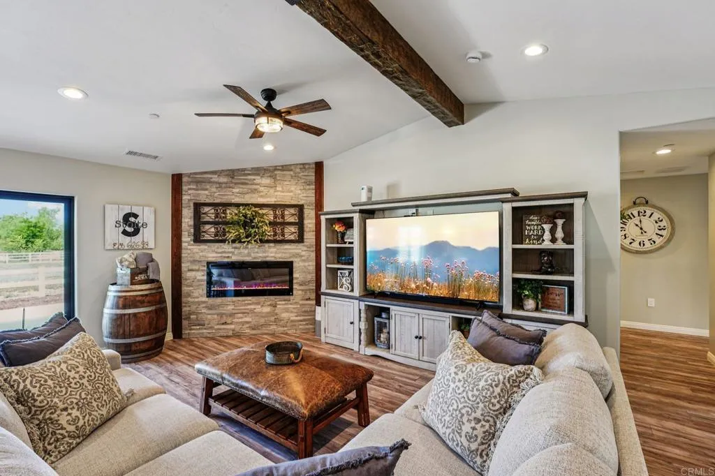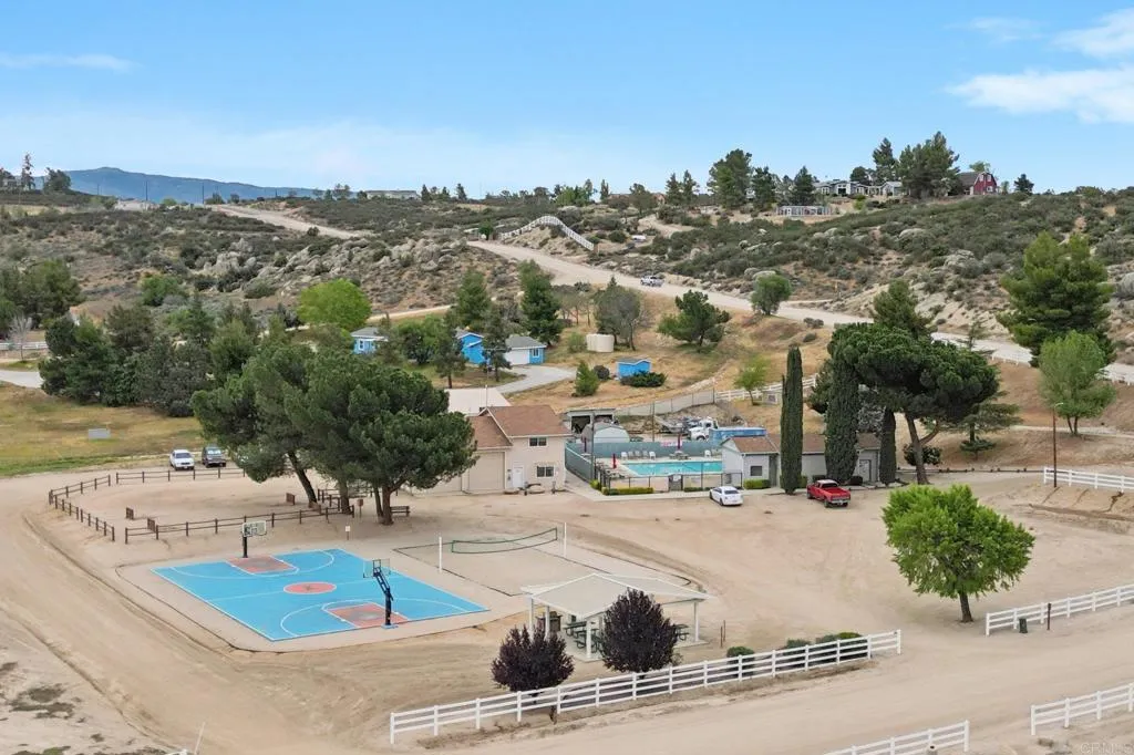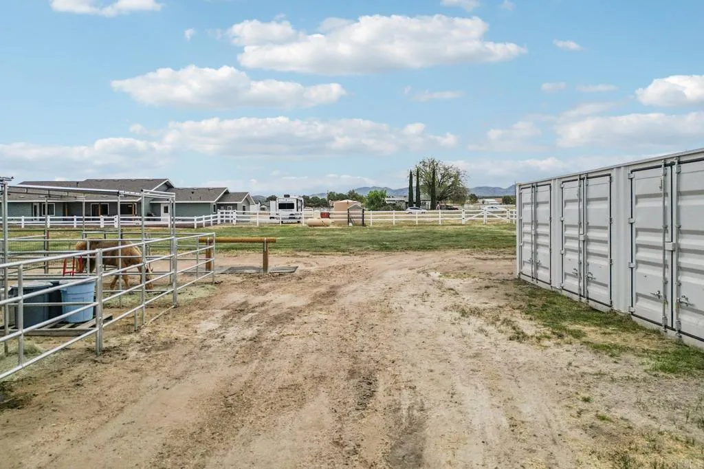 Welcome to a rare opportunity in Lake Riverside Estates, where newer construction meets usable land and true equestrian lifestyle. Built in 2025 and set on 2.57 flat, usable acres, this 4 Bedroom 3-Bath, single-story home with mountain views offers the space, functionality, and setting that are hard to find. Ideally located several lots from the paved main entrance and just a short distance to the community lake, pool, and amenities, the property combines convenience with privacy. Since completion, the property has been further improved with over $50,000 in upgrades, including more than 1,000 linear feet of vinyl fencing, horse corrals, expanded rear patio concrete, upgraded laminate flooring, and a 40-foot storage container with approximately 9-foot interior height, offering substantial additional storage! This thoughtfully designed 4-bedroom, 3-bath home with a versatile bonus room spans approximately 2,299 square feet and features an open-concept layout with quality finishes throughout. The main living area showcases granite countertops, soft-close cabinetry, stainless steel appliances, a walk-in pantry, and custom touches including faux wood beams, crown molding, and barn doors. The primary suite features a spacious custom 6x6 tiled walk-in shower, while the bonus room near the entry provides flexibility for a home office, playroom, or additional living space. A generously sized laundry room with an adjacent half bath functions well as a mudroom for everyday use. The usable acreage provides ample room for horses, RVs, trailers, and future improvements such as a barn or