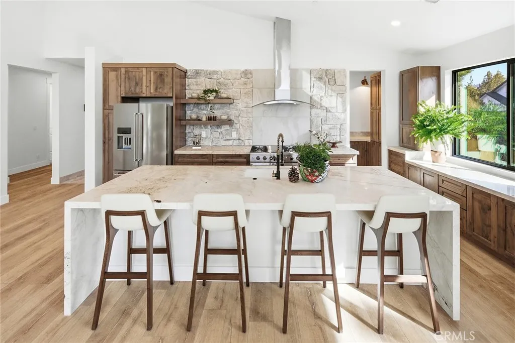 MOVE~IN READY! Experience the ultimate in luxury mountain living at this stunning Big Bear City home, overlooking a serene ponderosa pine forest with breathtaking mountain views. Featuring 5 bedrooms and 4 bathrooms, this sun-filled retreat combines refined rusticism with modern elegance, creating a warm, inviting atmosphere ideal for both everyday living and entertaining. Step out onto the large, beautifully designed deck to soak in the natural surroundings, host gatherings, or simply relax. The lower level is an entertainers dream, featuring a full-size wet bar with complete amenities, perfect for hosting friends, game nights, or enjoying aprs-ski relaxation. The primary suite serves as a true sanctuary, complete with a spa-inspired luxury bathroom and oversized master shower, offering the perfect retreat after a day on the slopes. Situated in the heart of Big Bear City, the home provides privacy, easy access to year-round outdoor recreation, and a rare combination of rustic charm and refined luxury. A remarkable opportunity to own a mountain retreat with stunning views, resort-style amenities, and space for the whole family.