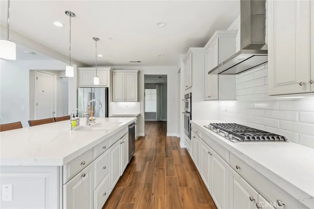 Step into luxury with this stunning 2019 former model home, offering an unparalleled blend of elegance and convenience in the heart of Eastvale. Boasting a sprawling 6-bedroom, 5-bathroom layouthighlighted by two lavish master suites conveniently located on both the main floor and upstairsplus a versatile loft, this residence is meticulously appointed with premium designer upgrades. Inside, discover custom wall coverings, elegant shutters, and a beautifully equipped kitchen featuring sleek quartz countertops and a complete suite of included appliances. Eco-conscious buyers will love the fully paid-off solar system, while the professionally finished backyardcomplete with a built-in grill and a cozy fireplaceprovides an idyllic setting for year-round entertaining. Perfectly positioned moments from the I-15 freeway, the upcoming Eastvale Civic Center, and downtown, this property is surrounded by premier retail hubs, top-tier schools, and neighborhood parks. It is the ultimate modern family sanctuary.