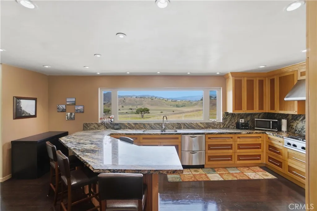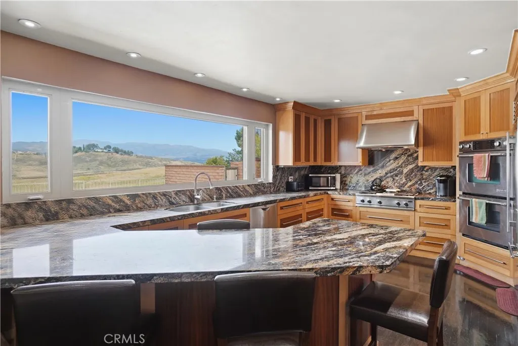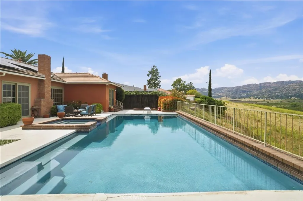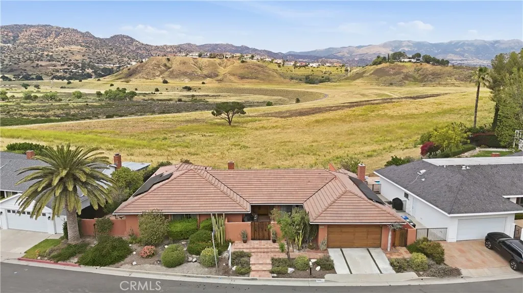 Experience breathtaking panoramic sunset, mountain, reservoir, and city views from this stunning single-story West Hills home offering 4 bedrooms, 2.5 baths, and approximately 2,717 sq.ft. of beautifully designed living space. This unique Southwestern/Santa Fe-inspired residence combines warmth, character, and functionality throughout. Step through the private oversized front porch into an inviting floor plan highlighted by expansive picture windows that perfectly frame the spectacular unobstructed views. The well-designed kitchen features granite countertops, rich wood cabinetry, a massive breakfast bar, Sub-Zero refrigerator, stainless steel appliances, two dishwashers, and double ovensideal for both everyday living and entertaining. Enjoy formal dining plus spacious step-down living and family rooms, each thoughtfully positioned to capture the incredible vistas with french doors. The private primary retreat offers french doors, abundant closet and cabinet space along with a luxurious ensuite bath featuring dual sinks, separate tub, and walk-in shower. Outside, the oversized pool was re-plastered just a few years ago and is perfectly situated to enjoy the surrounding scenery. The rear grounds also feature fruit trees, turf areas, and a lower yard ideal for gardening, growing vegetables, or creating your own outdoor oasis. Additional highlights include solar panels, separate laundry room, and attached 2-car garage with direct access. A rare opportunity to own a view property with endless charm, privacy, and potential in one of West Hills most desirable settings.