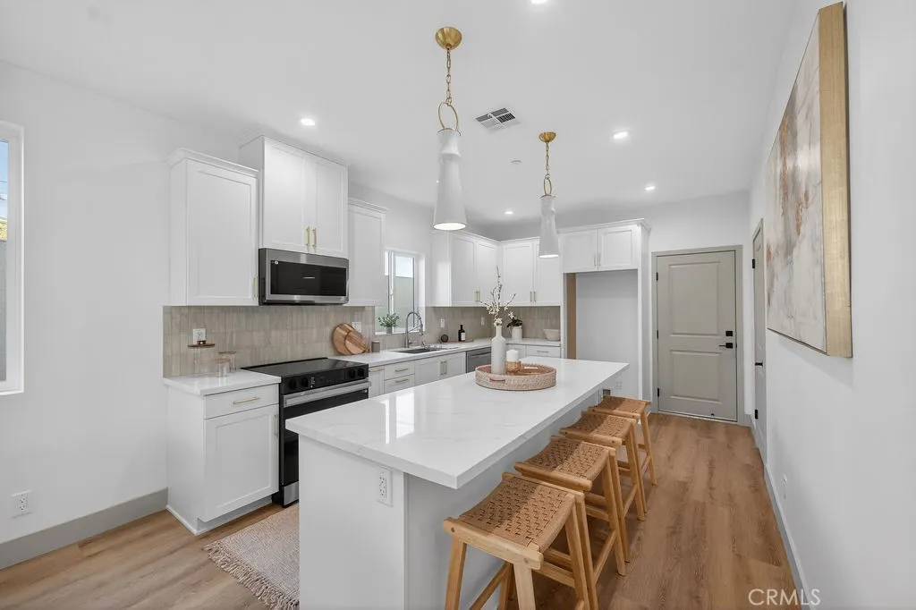 Brand-new construction in Los Angeles County featuring an attached 2-bedroom ADU, offering flexible multigenerational living or rental potential. Part of Clearwater Collection only 2 homes are left of 4 new homes. No HOA. No Mello-Roos. This detached single-family home offers a well-designed layout for everyday living. Located in Paramount, California, this Plan B home combines contemporary style, smart technology, and energy-efficient features, offering a main home with 4 bedrooms, 3 bathrooms, and approximately 1,772 square feet, plus an approximately 839-square-foot attached ADU, bringing total area to approximately 2,611 square feet. The first floor features living and dining areas that connect to a kitchen, creating an open space for daily living and entertaining. The kitchen includes quartz countertops, custom cabinetry with integrated storage, energy-efficient appliances, and modern finishes. Luxury vinyl plank flooring runs throughout. A downstairs bedroom and full bathroom provide flexibility for guests, extended family, or workspace. Upstairs, the primary suite offers a private retreat with an en-suite bathroom. Secondary bedrooms are well-sized for family, guests, or office use. Upstairs laundry and built-in storage add convenience. Additional highlights include modern lighting and plumbing fixtures, and custom tile finishes. The attached 2-bedroom ADU includes a private entrance, dedicated parking, its own laundry, and a full kitchen and living area. The attached garage features epoxy flooring, an EV-ready charging outlet, and a Wi-Fi-enabled garage door opener
