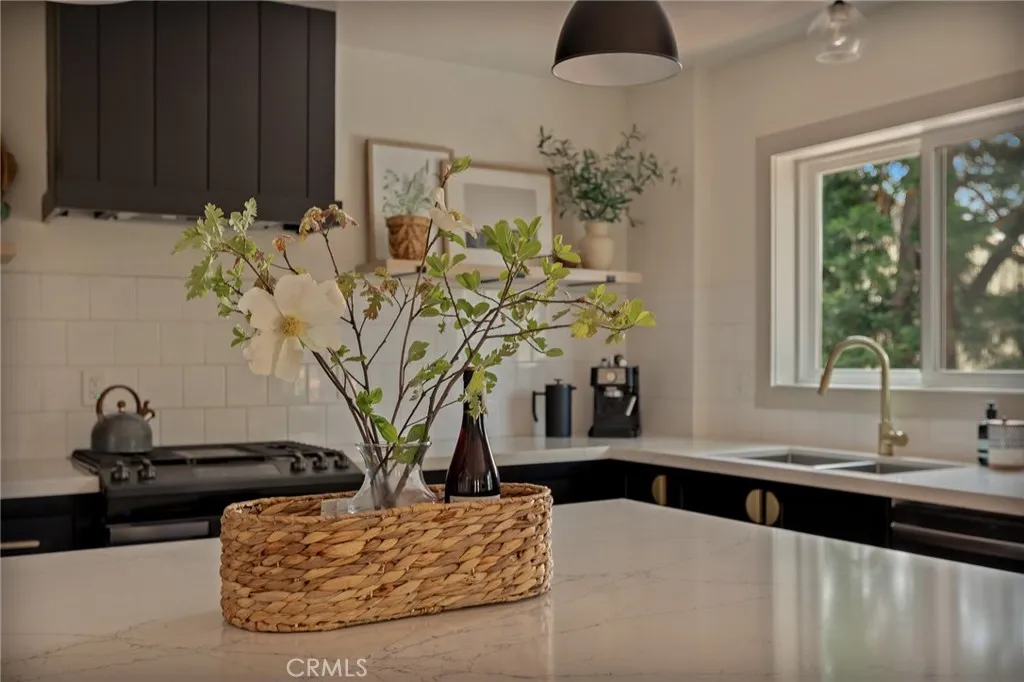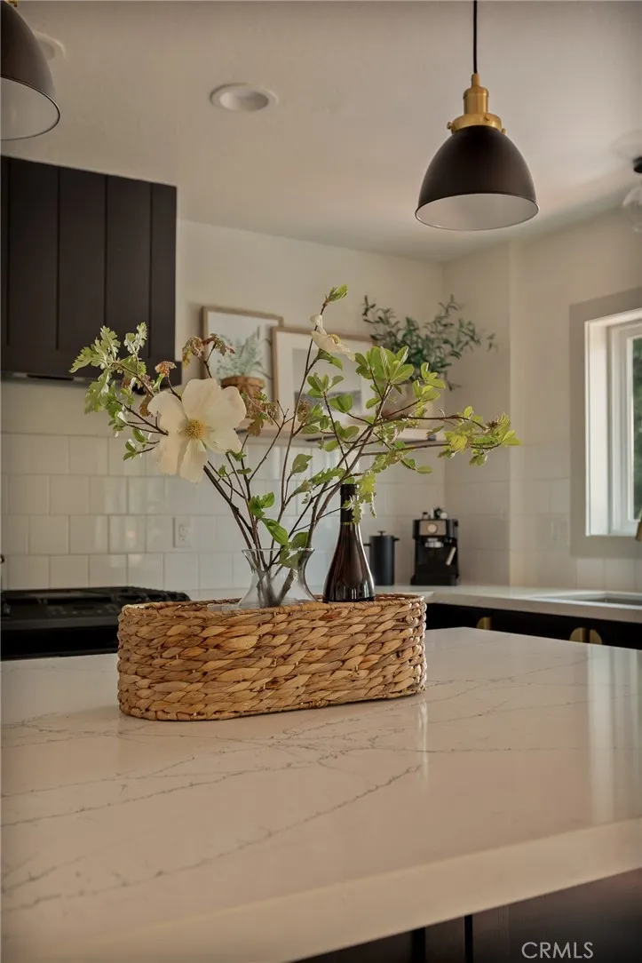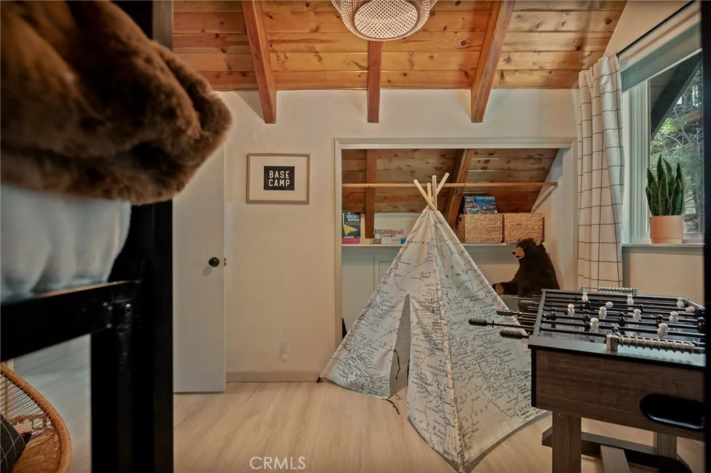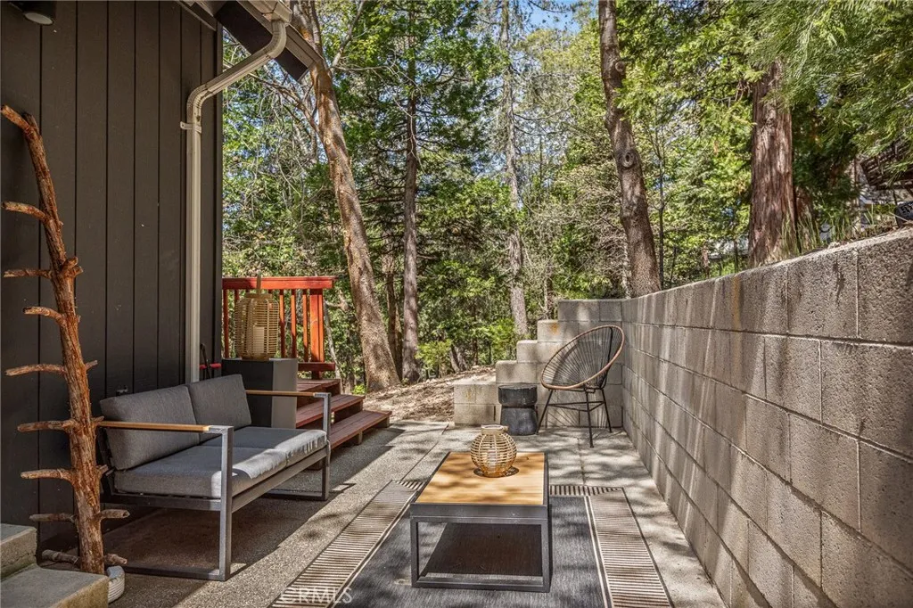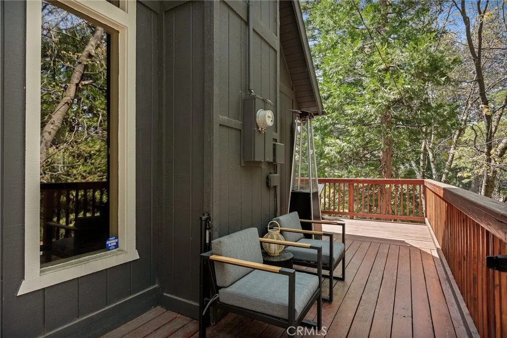 Perched up on the hillside you will find this stunning remodeled home located close to the Lake Arrowhead Village and Hwy 18. Enter in to this stunning high vaulted ceiling open floor concept home with primary bedroom on the main. Home was remodeled in 2020 and boasts an equipped kitchen with Calacatta Quartz counters, black stainless appliances, and a sliding glass door that leads to the expanded front near wrap around deck. The main living room boasts a large rock wall that exudes the focal point of the room. The back area has a covered private spa area that allows you to take in the mountain surroundings. Upstairs is 2 more bedrooms with high ceilings, and a bath. Home has been a successful Airbnb and has been used for multiple catalog branding shoots. Home has been updated with Dual Pane windows, and Pergo WetProtect flooring along with a curated style to exude the current trend. Home comes furnished and is located in Lake Rights. You will find lots of privacy on this lot, tucked in with the cedars, oaks, and dogwoods. Don't let this one pass you up.
