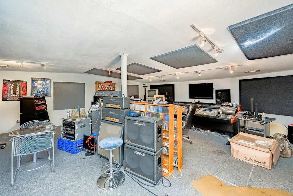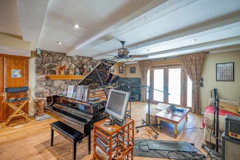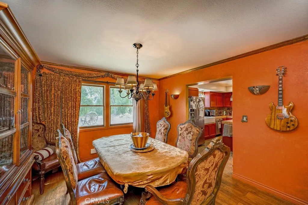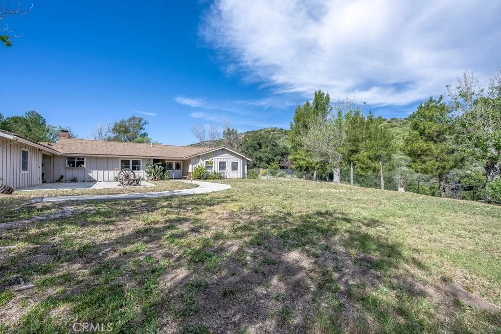 Music Composer's Dream! Tucked away in the scenic hills of Sand Canyon Oaks, this charming country retreat offers space, privacy, and exceptional versatility. Set on 2.68 acres and accompanied by an additional 2.05-acre parcel with its own APN, this rare offering presents a prime opportunity for expansion, development, or investment. At the rear of the property, youll find a standout feature: a professionally designed sound studio, fully floated and acoustically tuned, complete with its own isolated double-ground electrical system and separate meterperfect for musicians, producers, or creative professionals. (Water is available to the structure but not yet plumbed inside.) This custom ranch-style home features 3 bedrooms and 2 baths, highlighted by a step-down living room with rich wood flooring and a warm, inviting ambiance. The family room showcases a striking stone fireplace with raised hearth, beamed ceilings, ceiling fan, and track lighting, with French doors that open to a generous covered patioperfect for entertaining or enjoying the expansive grounds. The kitchen blends rustic charm with functionality, featuring custom tile and stone countertops and backsplash, a double-basin farmhouse sink, and a premium Wolf range with hood. A formal dining room adds an elegant touch, while the spacious primary suite offers a dual-sink vanity, shower/tub combination, and walk-in closet. A versatile laundry/mudroom just off the kitchen includes exterior access, a bath, utility sink, and ample storageideal for country living. The grounds are thoughtfully equipped with an 8-zone spr