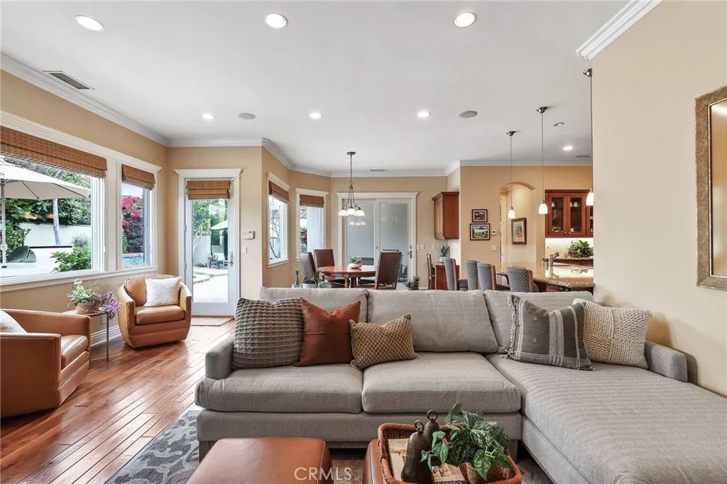 Built in 2004 by renowned builder Eddie Kesky, this exceptional custom residence spans approximately 3,216 square feet and showcases timeless craftsmanship and impeccable pride of ownership throughout. Rich hardwood flooring, detailed millwork, and a light-filled, open-concept design create an inviting and elegant first impression. The chefs kitchen is thoughtfully designed with a large center island, walk-in pantry, and abundant cabinetry, opening seamlessly to the main living spaces. A dedicated bar with a mini refrigerator, custom built-ins, and a fireplace enhance the homes warmth and make it ideal for both everyday living and entertaining. The expansive primary suite serves as a private retreat, featuring a spa-inspired bathroom with soaking tub, walk-in shower, and an oversized custom closet. A dedicated home office offers versatility for todays work-from-home lifestyle. Impeccably maintained and thoughtfully cared for, the home reflects true pride of ownership at every turn. Quality construction highlights include copper plumbing, PVC/ABS sewer lines, and integrated security for added peace of mind. Step outside to a private backyard oasis designed for quintessential Southern California living, complete with custom hardscape, built-in BBQ, spa, and lush, mature landscaping. Completing the home is an attached two-car garage with dedicated staircase to finished attic storage space over garage. A rare opportunity to own a meticulously crafted, turnkey residence in one of Orange Countys most coveted settings.