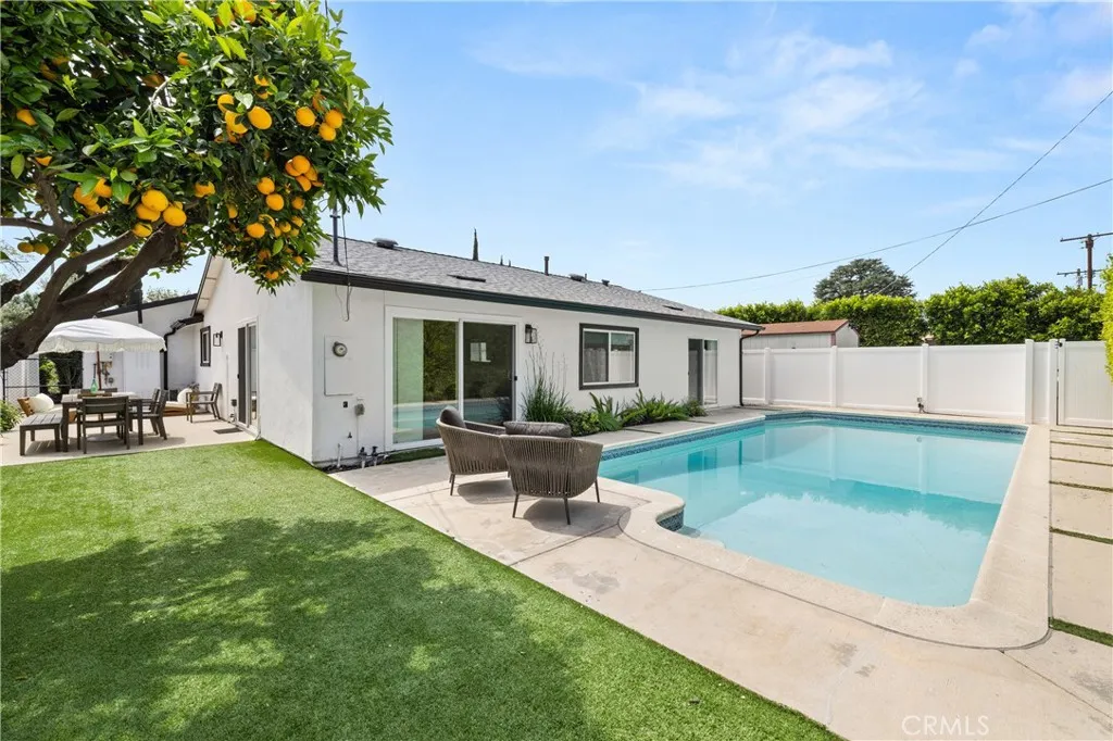 Welcome to a Rare Opportunity in the Heart of 91367 Discover this beautifully updated 5-bedroom, 3.5-bathroom home nestled in a highly sought-after, family-friendly Walnut Acres neighbourhoodoffering the perfect blend of comfort, privacy, and income-generating potential. A thoughtfully designed front privacy fence creates a serene, tree-lined retreatideal for children at play and pets to roam freely. Step inside to an airy, light-filled interior where an open-concept floor plan seamlessly connects the living, dining, and kitchen spaces. The spacious living room is designed for both relaxation and entertaining, featuring elegant French doors that open to a lush backyard oasis with a sparkling poolperfect for indoor-outdoor California living. The modern kitchen is equipped with stainless steel appliances, granite countertops, and a highly functional layout, offering both style and practicality for everyday living and hosting. The main suite serves as a private retreat, complete with French doors leading directly to the pool and a beautifully updated en-suite bathroom with a sleek vanity and contemporary shower. Additional bedrooms offer flexibility for family, guests, home offices, or fitness spaces. Step outside to your own private sanctuaryfeaturing a generous patio for al fresco dining, landscaped gardens, and a pool ideal for entertaining or unwinding. Along the side of the home, four lockable storage sheds provide exceptional space for all your storage needs. Exceptional ADU Income Opportunity One of the homes most compelling features is the spacious, private ADU, though