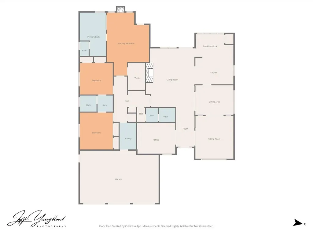 Welcome to this single-story West Palmdale home located in desirable Godde Terrace Estates. Situated up above a quiet peaceful street with valley and mountain views, this custom-built home features 3 bedrooms and 3 bathrooms, and a large office (could be a 4th bedroom). The open floor plan with high ceilings, wood-like vinyl flooring and tile throughout create a spacious and inviting feel. With both a large living and dining room as well as an oversized family room there is plenty of space to entertain family and friends. The kitchen space has a layout that the most discerning cook would appreciate. This would include plenty of counter space, island, built-in appliances as well as ample cabinet and pantry storage. In addition to the formal dining area, you also have a cozy breakfast nook within the kitchen area. The oversized primary bedroom with walk-in closet and gas fireplace is very inviting and with a large primary bathroom that has dual vanities, walk-in shower and jetted soaking bathtub is perfect to relax in after a long day. There is a Jack and Jill bathroom that is provided for the spacious 2nd and 3rd bedrooms. A home office with custom Oak wood paneling and cabinets is provided for the work from home types. Additional highlights include a finished three-car garage, and a large backyard perfect for outdoor enjoyment and ready for a pool, vegatable garden, playground or any creative vision you may have. With no HOA's and situated in a peaceful, family-friendly neighborhood, this gem is conveniently located near top-rated schools, shopping, dining, and recreational