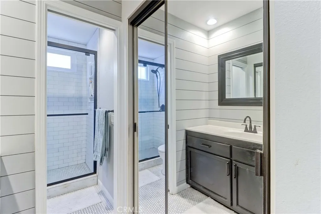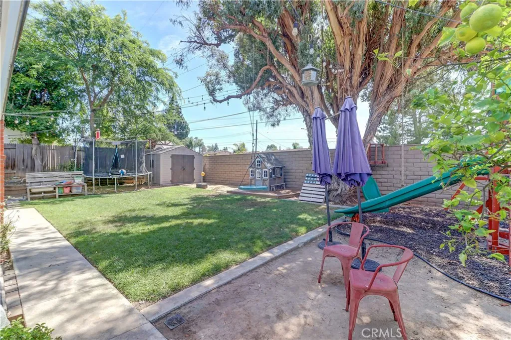 This beautifully maintained home showcases extensive upgrades and thoughtful improvements throughout. Inside, youll find durable tile flooring, upgraded baseboards, and recessed (can) lighting in both the kitchen and living room, creating a bright, modern ambiance. The refreshed kitchen features refaced cabinetry, while both the primary and secondary bathrooms have been fully remodeled with stylish finishes. Comfort and convenience are elevated with ceiling fans in every bedroom and the living room, as well as built-in speakers in the main living areaperfect for entertaining. A brand-new attic ductwork system enhances overall HVAC efficiency. Windows and sliding door have been updated. The home also offers a partially finished attic with flooring and easy ladder access, providing valuable additional storage space. Step outside to a freshly painted exterior, a spacious three-car-wide driveway, and a backyard designed for both function and enjoyment. Highlights include a playset, a concrete pad for a large shed, and well-maintained irrigation system. Upgraded Home with Paid Solar (NEM 2.0) and Exceptional Functionality. Energy efficiency is a standout feature, with a fully paid 10.4 kW solar system (26 panels with microinverters), delivering near-zero electric bills. The system is grandfathered under the highly desirable NEM 2.0 program, offering long-term savings and utility cost protection. Ideally located within walking distance to Santiago STEM Magnet Elementary School and close to community amenities, including access to a beach and tennis club featuring a lake and swimm