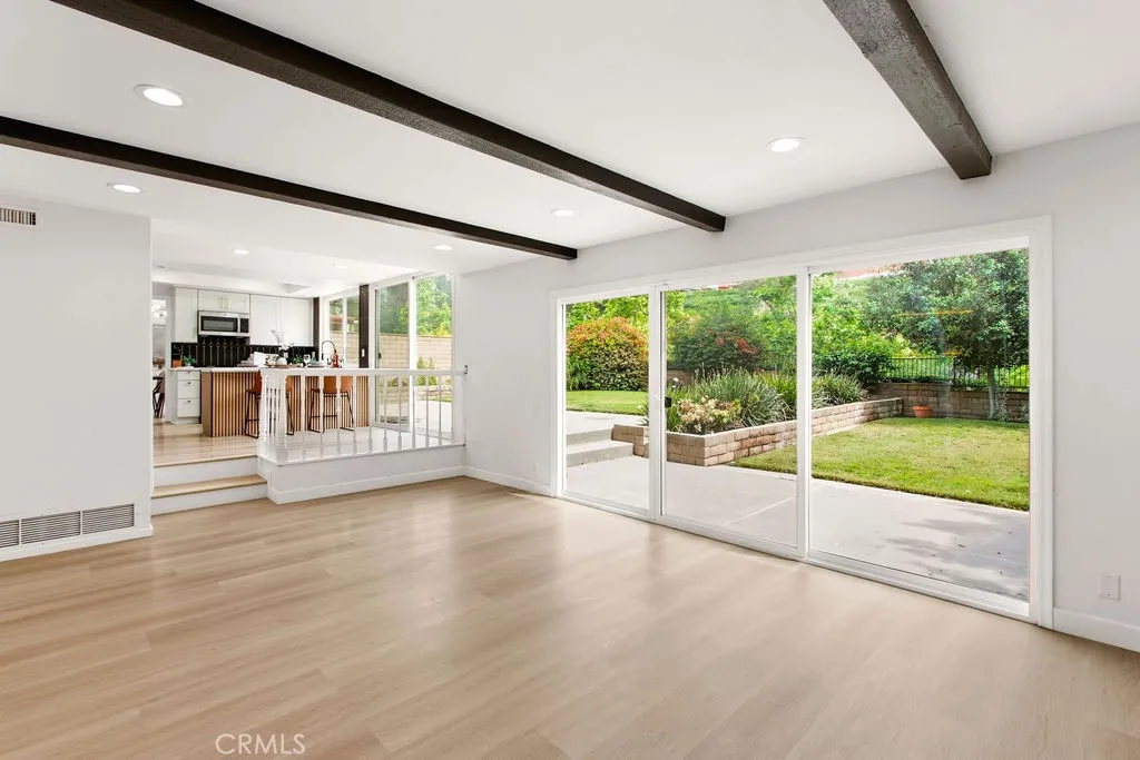 Welcome to 24392 Macedo in the heart of Mission Viejo, a beautifully upgraded home offering space, flexibility, and privacy on an oversized lot with no rear neighbors. Designed for todays lifestyle, this thoughtfully laid-out residence features a highly desirable main-level bedroom and full bathroom, ideal for multi-generational living, guests, or a private home office. Step inside to discover a light-filled interior enhanced by new luxury vinyl plank flooring throughout, fresh interior paint, and recessed lighting that creates a warm, modern ambiance. The functional floor plan flows effortlessly, offering both formal and casual living spaces, perfect for everyday living and entertaining. The remodeled kitchen is a standout, featuring white shaker cabinetry, quartz countertops, designer backsplash, updated sink and fixtures, and newer appliancesall opening to the family room with a stone-accented fireplace and an upgraded wet bar. Upstairs, the spacious bedrooms include a primary suite with a fully remodeled bathroom, dual sink vanity, custom tiled shower, and frameless glass enclosure. Secondary bathrooms have also been tastefully renovated with new vanities, tile work, fixtures, and frameless shower doors. Set on an expansive, private lot, the backyard offers exceptional outdoor space with no homes directly behind, creating a rare sense of openness and tranquility with endless possibilities. Additional highlights include dual pane windows, new exterior paint, new chandeliers and fixtures, mirrored closet doors, and a paid-off solar system with Tesla battery storage and EV