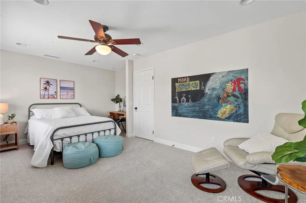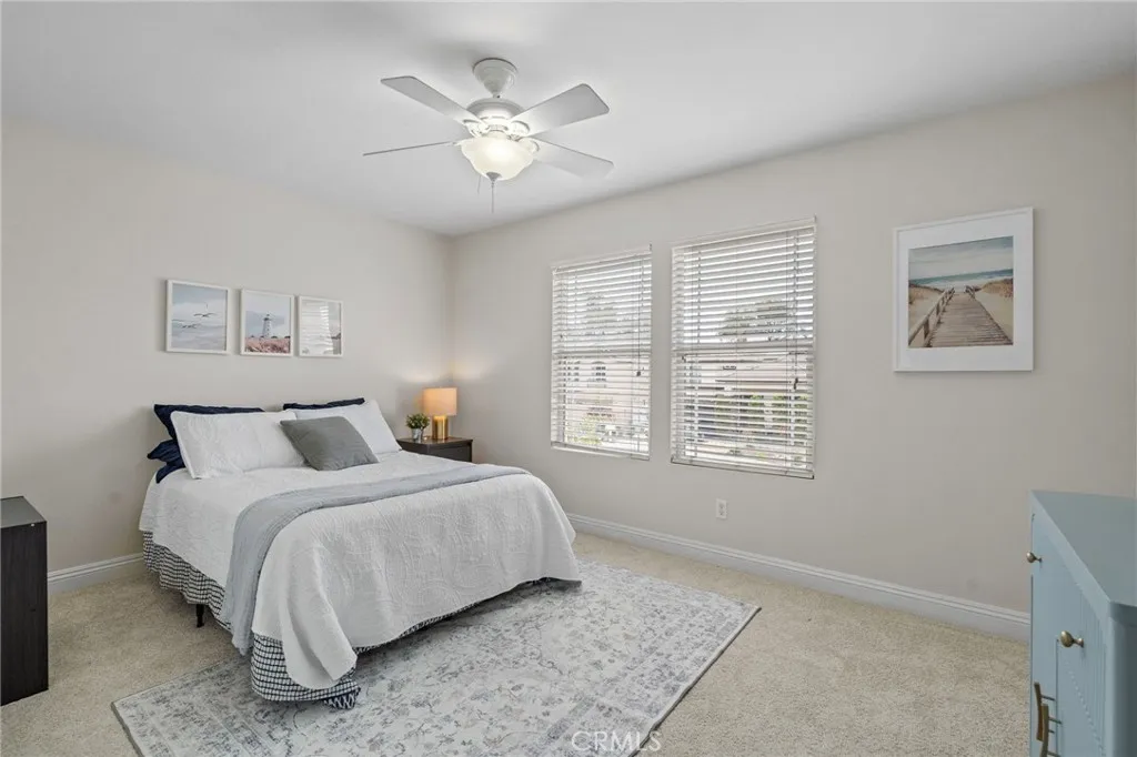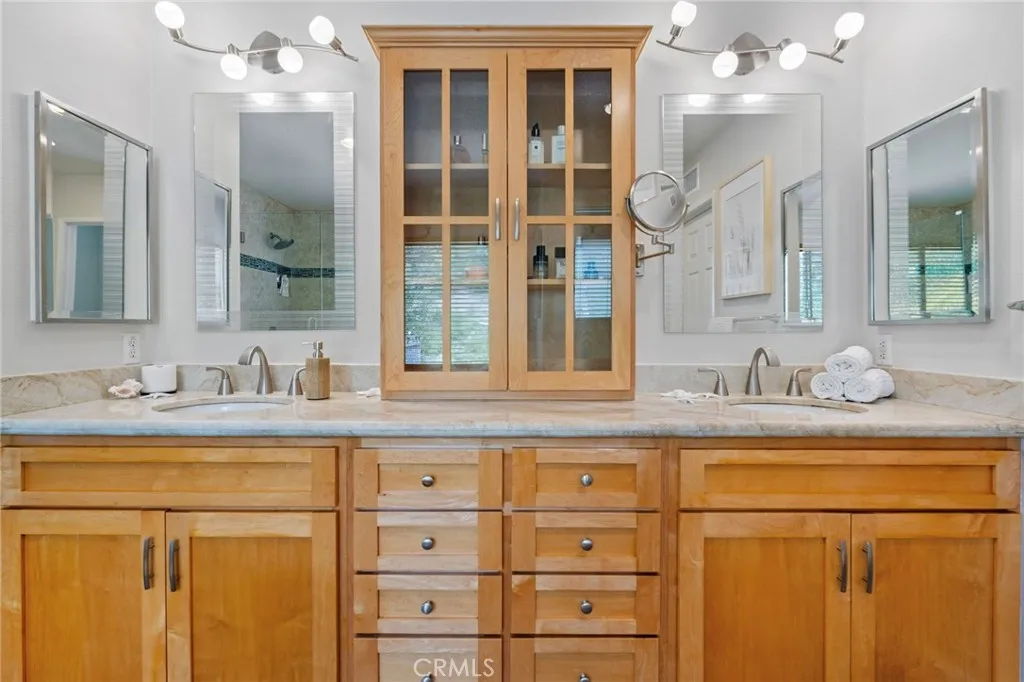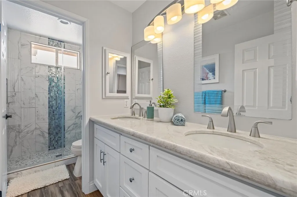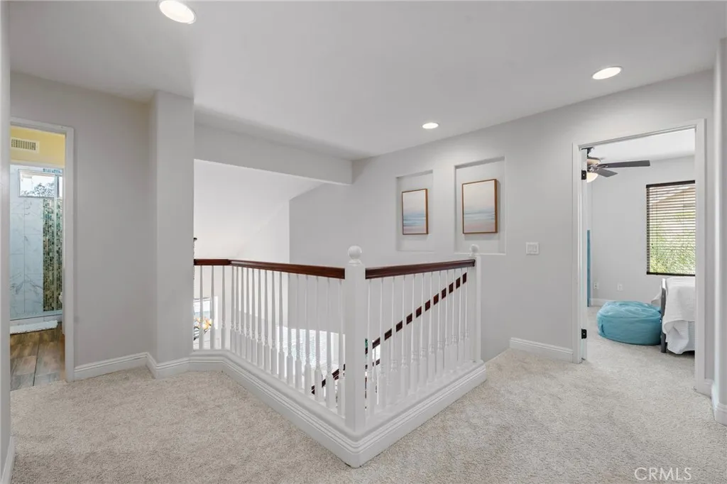 Nestled at the end of a double cul-de-sac in the highly sought-after Las Flores community of Rancho Santa Margarita, this warm, inviting, move-in ready 5-bedroom, 2.5-bath home offers flexible living space with rich hardwood floors, solid wood cabinetry, and updated finishes throughout. From the moment you enter, elevated ceilings and a distinctive octagonal tray ceiling detail set the tone for the charm and elegance found throughout. The bright, inviting open-concept kitchen and family room features granite counters, a beautiful mosaic backsplash, and picturesque views of the backyard oasis and lush greenbelt. A downstairs bedroom provides ideal flex space for a home office or guest room. Upstairs, the primary suite is a true retreat with a private balcony, an updated bath with separate soaker tub and shower, dual sinks, and generous closet space. Three additional bedrooms share an updated hall bath with shower and dual sinks, and the laundry room is conveniently located on the same level. Your private backyard oasis features a spa, built-in BBQ with outdoor kitchen, fire feature, and plenty of room to entertain on your own sunny slope under the California sky. Thoughtfully upgraded throughout, this home includes a whole-house PEX repipe, an American Standard Platinum heating and cooling system with updated ductwork and heat pump, and an EV-ready garage with an electric vehicle charger. The prepaid solar lease transfers to the new owner no monthly payments, with service and maintenance included providing energy efficiency and long-term savings. Located in the heart of La
