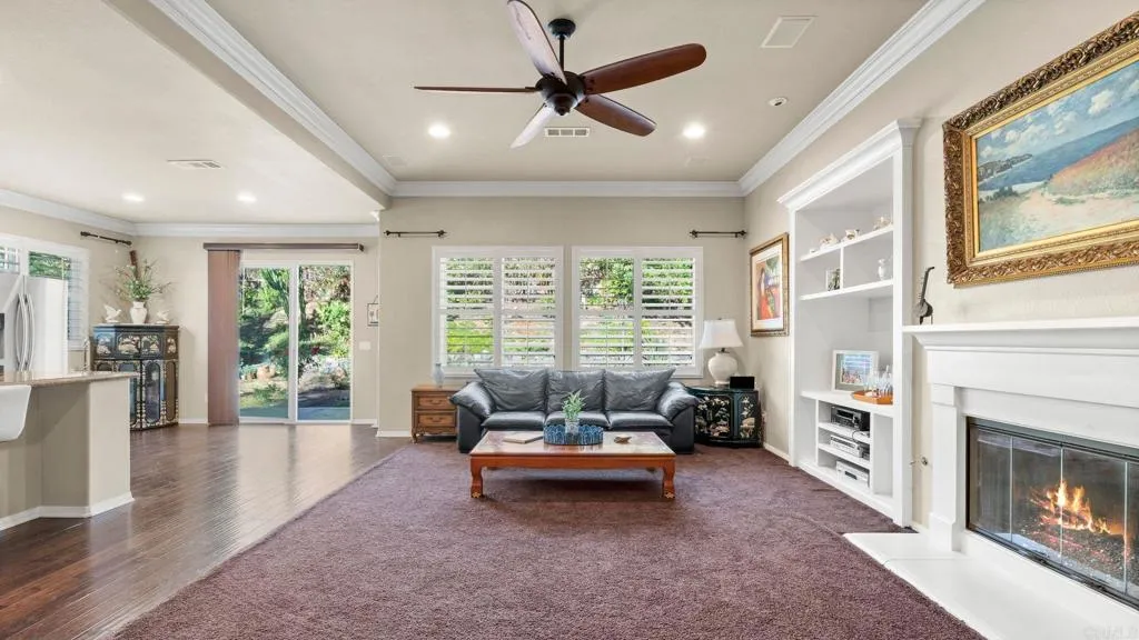 Welcome to this beautifully maintained single-story residence located on a rare 0.3-acre corner lot in the highly desirable EastLake / Otay Ranch community of Chula Vista. This home blends comfort, functionality, and thoughtful upgrades, offering a lifestyle of ease and indoor-outdoor living. Step inside to an inviting open-concept floor plan featuring elegant crown molding, adding warmth and architectural detail throughout the main living spaces. The home showcases stylish marble flooring in the bathrooms, elevating the primary and secondary baths with a refined, timeless finish. The kitchen and entertaining areas flow seamlessly, enhanced by abundant natural light and a layout designed for both everyday living and hosting. Outside, the expansive lot offers exceptional privacy and curb appeal, with professionally designed outdoor space featuring stamped concrete hardscape, ideal for entertaining, dining, and low-maintenance enjoyment of the backyard. The property is enriched with mature fruit-bearing trees, including tangerine, pomegranate, persimmon, and Italian guava, creating a lush, productive landscape that feels like a private orchard. The generous lot size provides room for gardening, outdoor expansion, or simply enjoying the open space. Additional highlights include a single-level layout for convenience, a well-established neighborhood setting, and close proximity to parks, schools, shopping, and community amenities. A rare combination of upgraded interiors, resort-style outdoor living, and a premium oversized lot, this home stands out as a true EastLake opportunit