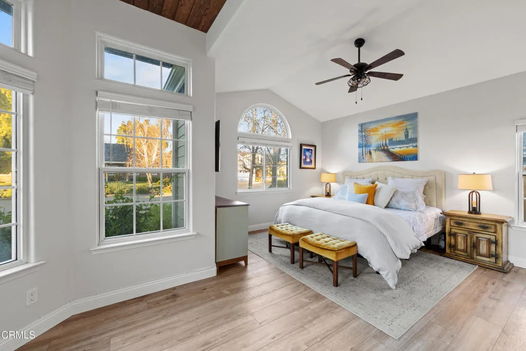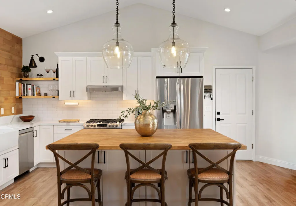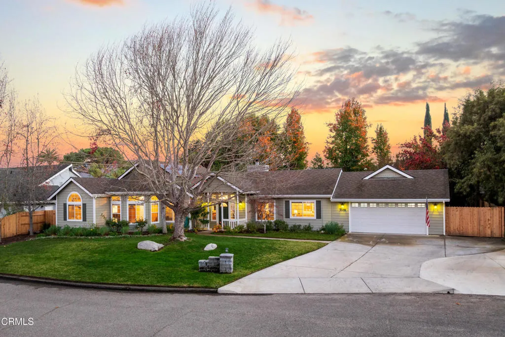 Welcome to the charming cul-de-sac of 3384 Manzana Street, ideally located near downtown Santa Ynez. This darling property offers approximately 1,746 SqFt and has been recently updated with a modern farmhouse aesthetic. The open-concept living space is both functional and inviting, featuring vaulted ceilings, an oversized butcher block island, floating shelving, subway tile, and a farmhouse sink, all highlighted by beautiful natural light. The cozy living room centers around a fireplace and opens to the backyard through two sets of French doors. A shiplap accent wall creates a stylish focal point for the TV area and ties the design elements together. Down the hall are four bedrooms and two bathrooms. The updated bathroom features a dual vanity and neutral finishes that provide a timeless look. The spacious primary bedroom includes a charming nook, perfect for reading, exercise, or simply enjoying views of the beautiful mature silver maple tree out front. The primary bathroom showcases a glass-enclosed shower. Step outside to a peaceful backyard retreat featuring a deck, paver patio, lush lawn and landscaping, and a spa. A convenient pass-through window from the kitchen makes outdoor entertaining easy, great for enjoying wine country living. Located close to all that downtown Santa Ynez offers, including curated dining, boutique shopping, and wine tasting. Come experience this move-in ready home and make it yours.