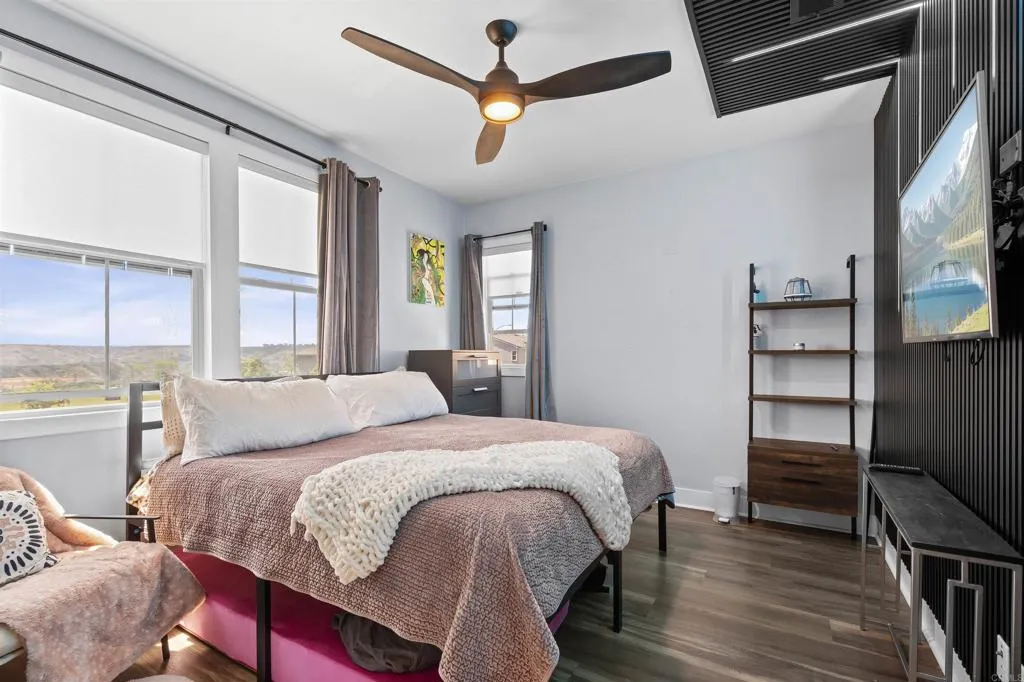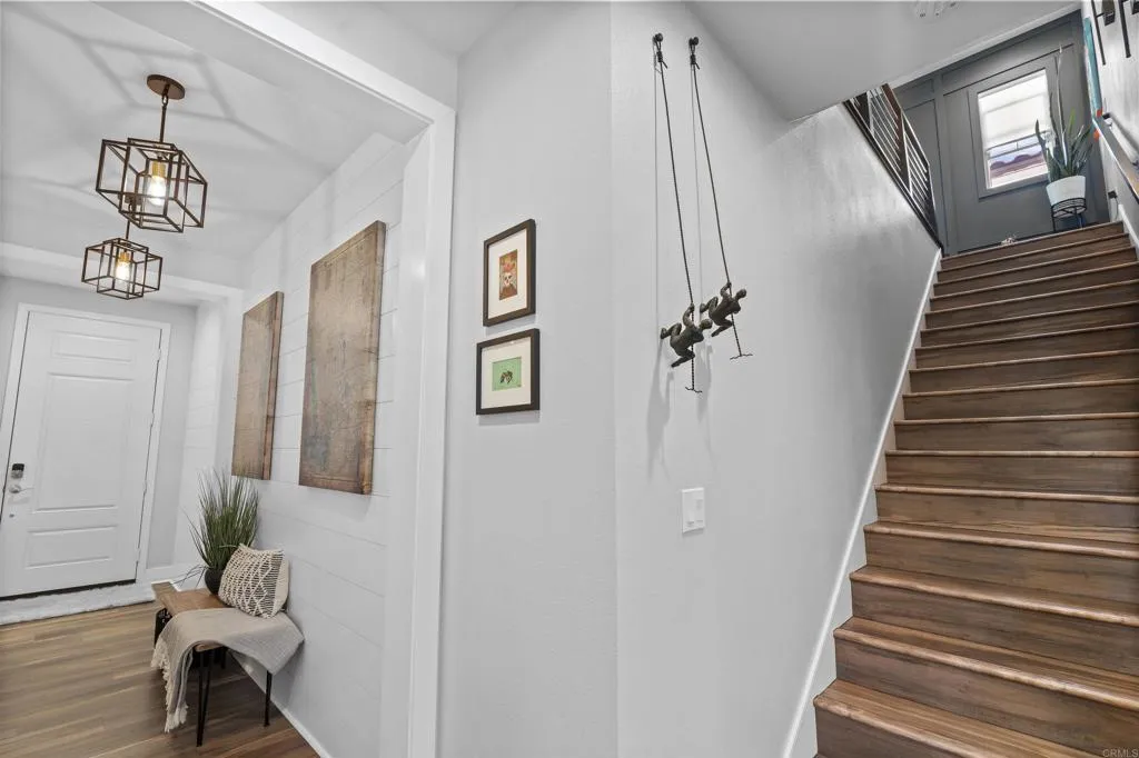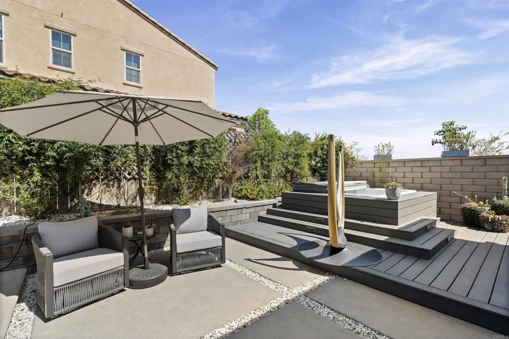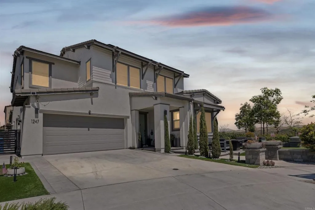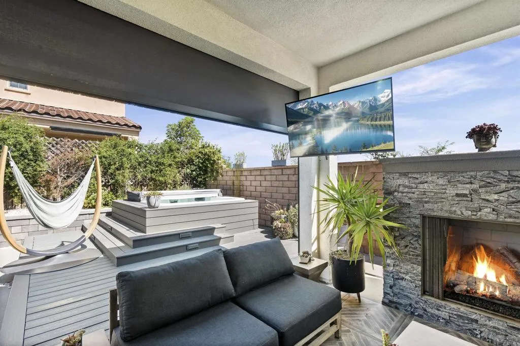 Welcome to this one of a kind 4bedroom/4bath residence in The Village of Escaya in Chula Vista. Situated on a desirable corner lot within a quiet cul-de -sac, this home offers both privacy and an elevated sense of space. You'll find thoughtfully curated custom upgrades throughout, including durable scratch-resistant flooring, custom closets, designer accent walls, and upgraded bathrooms. The functional layout includes a full bedroom and bathroom suite on the mail-level, ideal for guest or multi-generational living. Upstairs you will find additional owners suite and a dedicated office space perfect for those working from home or creating a private retreat. The finished two car garage boasts upgraded flooring and custom built-in storage for maximum efficiency. Step outside- to your private backyard oasis, custom outdoor flooring, a relaxing hot tub and an outdoor TV setup perfect for unwinding all year-round. Additional highlights include a water filtration system, tank less water heater, and solar panels offering both convenience and energy efficiency. This move in ready home truly standout and waiting for you to make it yours!