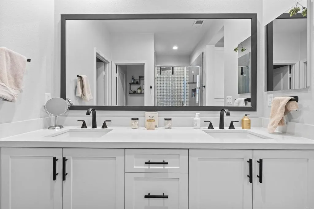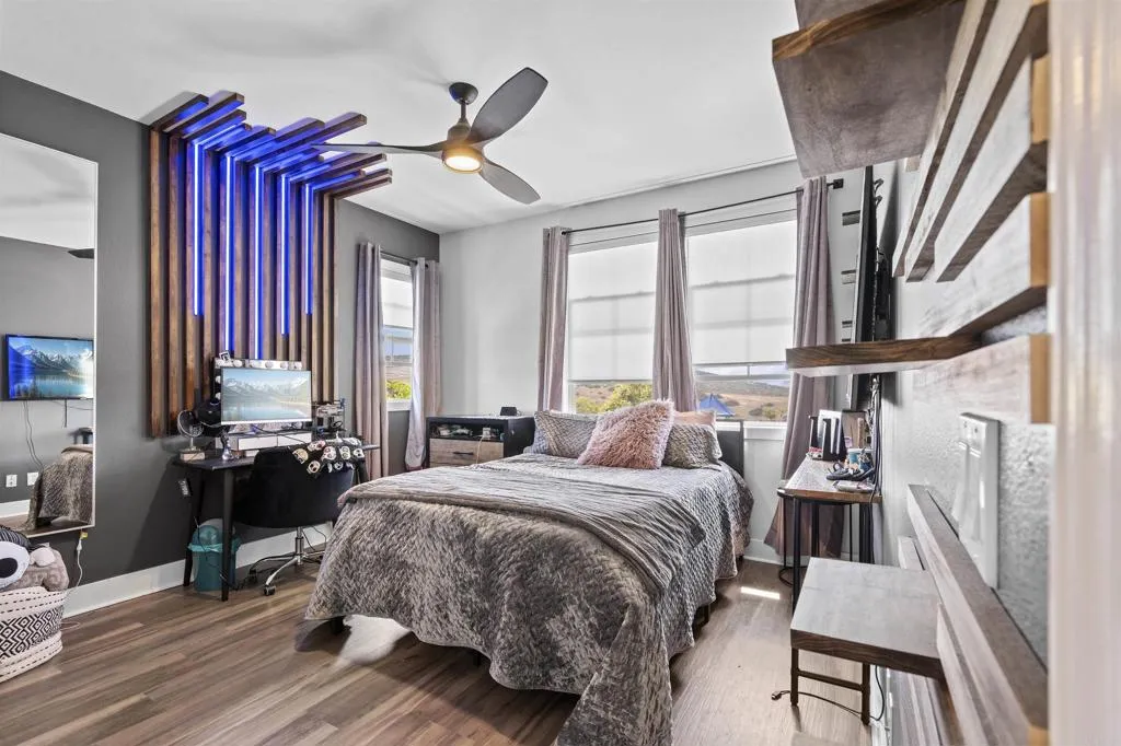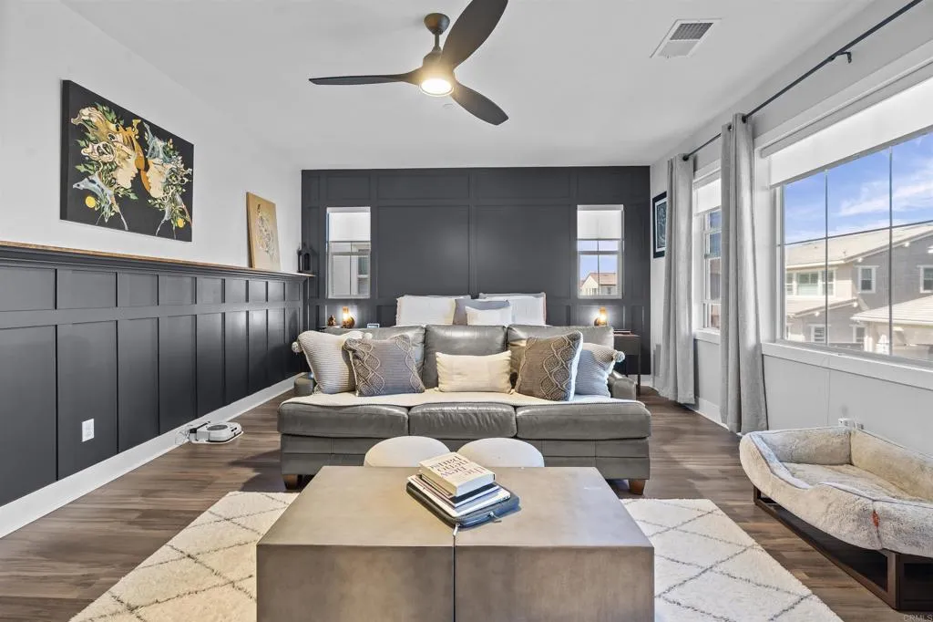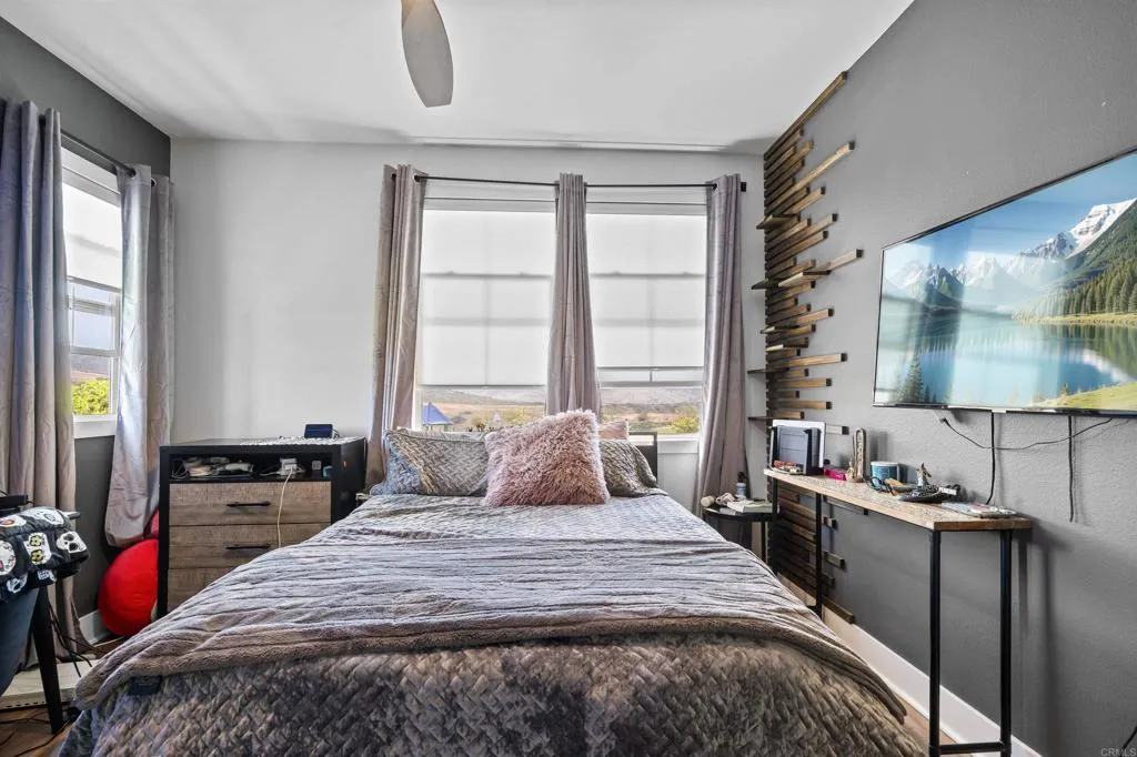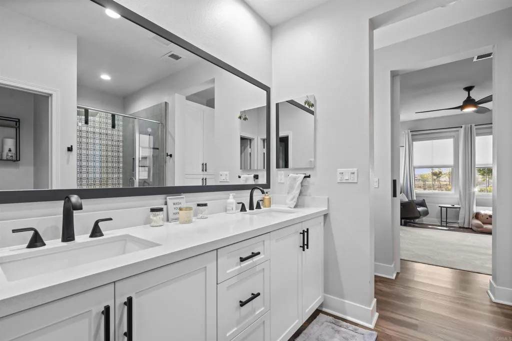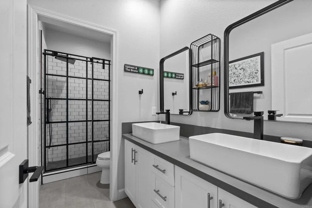 Welcome to this one of a kind 4bedroom/4bath residence in The Village of Escaya in Chula Vista. Situated on a desirable corner lot within a quiet cul-de -sac, this home offers both privacy and an elevated sense of space. You'll find thoughtfully curated custom upgrades throughout, including durable scratch-resistant flooring, custom closets, designer accent walls, and upgraded bathrooms. The functional layout includes a full bedroom and bathroom suite on the mail-level, ideal for guest or multi-generational living. Upstairs you will find additional owners suite and a dedicated office space perfect for those working from home or creating a private retreat. The finished two car garage boasts upgraded flooring and custom built-in storage for maximum efficiency. Step outside- to your private backyard oasis, custom outdoor flooring, a relaxing hot tub and an outdoor TV setup perfect for unwinding all year-round. Additional highlights include a water filtration system, tank less water heater, and solar panels offering both convenience and energy efficiency. This move in ready home truly standout and waiting for you to make it yours!