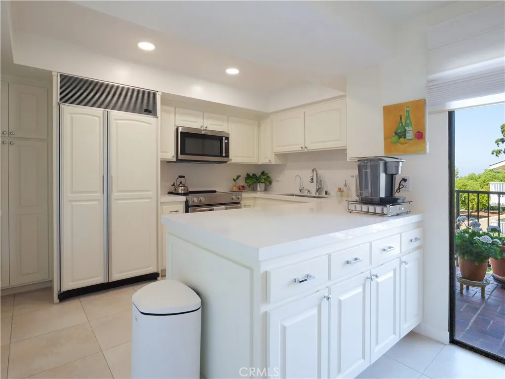 Nestled in the heart of Lunada Bay, this stunning one-level condo is located at the highly coveted "Villa Carrillo Jardin". Featuring 2-bedrooms plus a den, 2 bathrooms and 1,764 square feet, this light infused corner unit is the one you've been waiting for! Enjoy ocean & sunset views from Catalina to Malibu from the living room and spacious balcony overlooking the charming Lunada Bay Park & Plaza. The gourmet kitchen has been tastefully remodeled and features quartz countertops, a built-in Sub-Zero fridge, Bosch dishwasher, wood cabinets, a large pantry with custom shelving, laundry area and another balcony that is perfect for dining al fresco. The exquisite primary suite has 2 supersized mirrored closets, ceiling fan and a remodeled bathroom with designer mosaic tile flooring. Enjoy the large dining room that's centrally located and perfect for entertaining. Other amenities include high ceilings, recessed lighting, custom shutters and sunshades, paneled doors, luxury vinyl plank flooring, new heater and a dual fireplace in the living room and den. Villa Carrillo Jardin is a quaint community of only 9 units with elevator access from the subterranean garage to all levels. There are two designated parking spaces (#17 and #18) along with 2 storage closets. Ideal location on the beautiful Palos Verdes Peninsula - nearby award winning PVPUSD schools, coastal ocean bluffs and just a few steps from all the lovely shops and restaurants in Lunada Bay Plaza. Don't let this one get away!