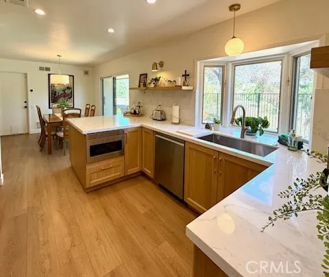 Perched on a desirable corner lot in the foothills of La Caada Flintridge, this thoughtfully updated residence blends timeless design with modern livability, all framed by sweeping city lights and the surrounding golf course views. A warm, inviting interior unfolds with LVP white oak floors and an effortless flow between living spaces. The remodeled kitchen anchors the home with refined finishes and functionality, while a brand-new sunroom extends the living experienceperfectly capturing natural light and the homes picturesque setting. Designed for both everyday living and elevated entertaining, the property features newly installed pavers and upgraded hardscape that seamlessly connect front to back, creating a cohesive outdoor environment that embraces the views. The primary suite offers a private retreat, complete with a beautifully remodeled bathroom, while an updated powder room adds a layer of polish for guests. Every detail reflects pride of ownership and thoughtful upgrades throughout. New HVAC, appliances and tankless water heater. All upgrades done in 2025 A rare opportunity to own a turnkey home in a coveted foothill locationwhere design, comfort, and views come together effortlessly