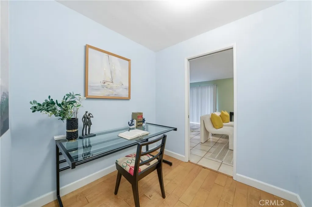 Prime Location! Just steps away from the iconic Santa Monica Beach, this home offers the vibrant rhythm and lifestyle of coastal living right at your doorstep. Nestled within a gated community, residents enjoy added privacy and security, along with access to a sparkling pool. The property features a bedroom with walk-in closet, a bathroom, a cozy den perfect for a home office or reading space, and an upgraded kitchen designed for both style and functionality. The interior boasts a combination of tile and laminate flooring, providing both durability and elegance throughout. Additionally, the home includes its own dedicated parking space for convenience. A rare opportunity to experience beachside living in one of the most desirable locations!