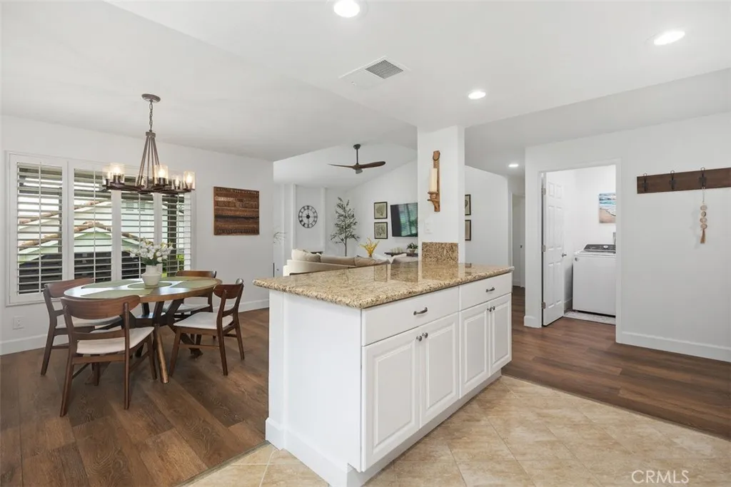This single-story home nicely updated, features a 3-bedroom, 2-bath detached home with no interior steps. A spacious entryway welcomes you into this open concept living space. The bright, inviting kitchen includes granite countertops, stainless steel appliances, newer cabinetry, recessed lighting, and an island with additional storage. All bedrooms are generously sized with ample closet space. The bathrooms have also been tastefully updated. Vinyl plank flooring throughout, interior laundry room and a new HVAC system was installed within the past 3-4 years. Additional highlights include a full-size two-car garage with an electronic opener (two remotes) with epoxy floors. Located in the 55+ community of Casta del Sol, this neighborhood spans over 400 acres with mature landscaping, scenic hills, and greenbelt surroundings. Residents enjoy access to two recreation centers with heated pools and spas, as well as amenities such as community garden plots, Heritage Gardens walking paths, tennis and pickleball courts, golf course, a fitness center, shuffleboard, billiards, lawn bowling, a chipping green, a library, and numerous social clubs. This home is within walking distance of Recreation Center #2, offering convenient access to gardening areas, tranquil walking trails, a pool and spa, and various recreational activities. The community also features a low property tax rate, no Mello-Roos tax, and affordable HOA dues.