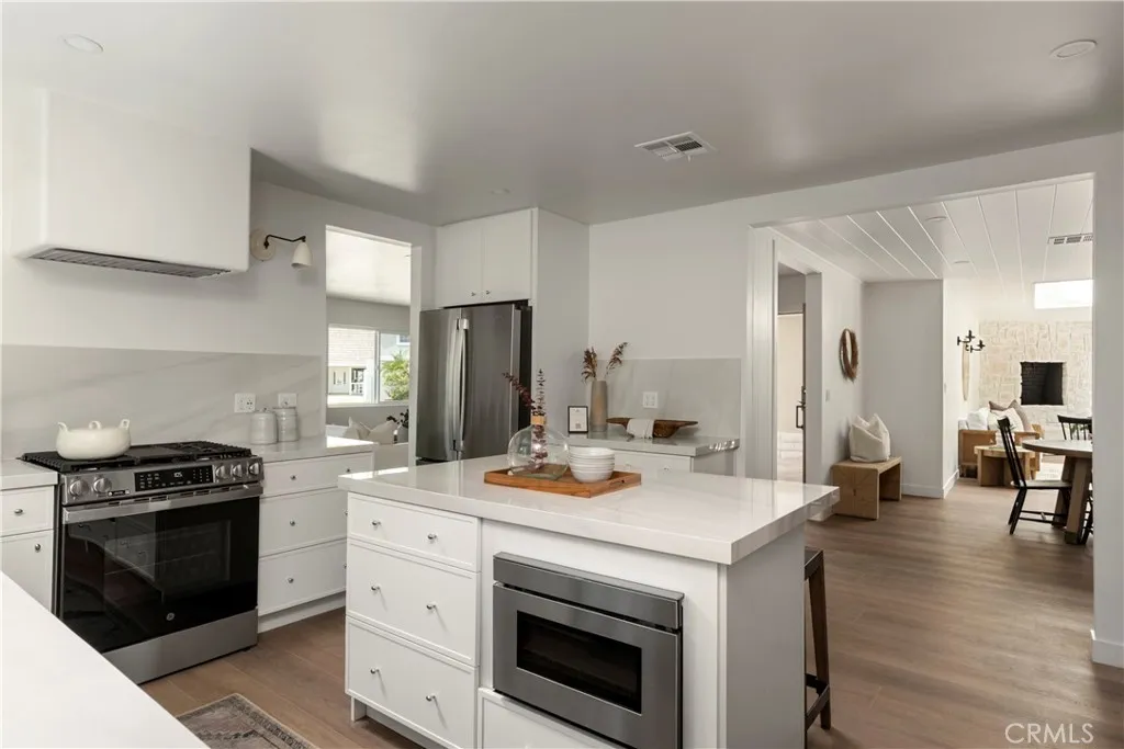 Tucked away at the end of a quiet cul-de-sac, this fully renovated single-story residence offers an unparalleled blend of sophisticated design and everyday comfort. Spanning 1,933 square feet, the 3-bedroom, 2-bathroom home has been reimagined with no expense spared. The heart of the home is a true chefs kitchen, featuring custom cabinetry with ample storage, a bay window over the farmhouse sink with a premium Brizo faucet and exquisite Bianco Lasa porcelain countertops. Transition into the sun-drenched family room, where soaring skylights and a striking El Dorado Stone fireplace create an inviting centerpiece. For more intimate gatherings, the secondary living room showcases a bespoke plaster-finished fireplace next to the formal dining room with a Rejuvenation chandelier. Outside, your private oasis awaits with a sparkling pool; perfect for summer entertaining and a fully secured yard on all sides. Other upgrades include a new HVAC and new windows and sliders. The property is also within walking distance to top-tier schools and the sprawling Tri-City Park.