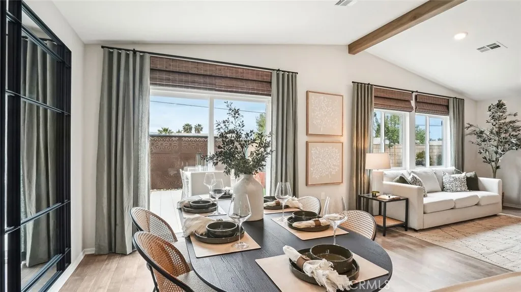 This Plan 1890 square foot single-story model home has many decorator features including designer vinyl flooring, 4 bedrooms and 3 full bathrooms, and there are no homes directly behind. The home has an open concept floor plan with vaulted ceiling in the Great room and dining area. The island kitchen has stainless steel appliances, granite counter tops, and a pantry closet. The home has Alto (Gray) shaker-style cabinetry. There is Smart Home technology throughout, solar panels installed, and a 3-car garage pre-plumbed for an electric car. The home is fully irrigated and landscaped in the front and back yards. We anticipate the home will be ready to move-in June 2026. This is an all-electric home.