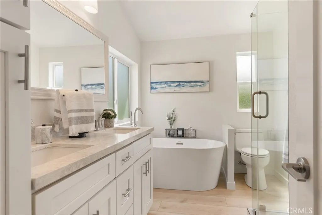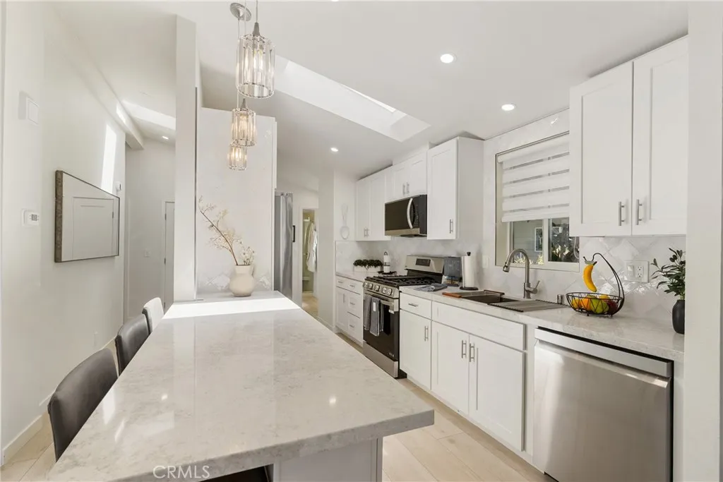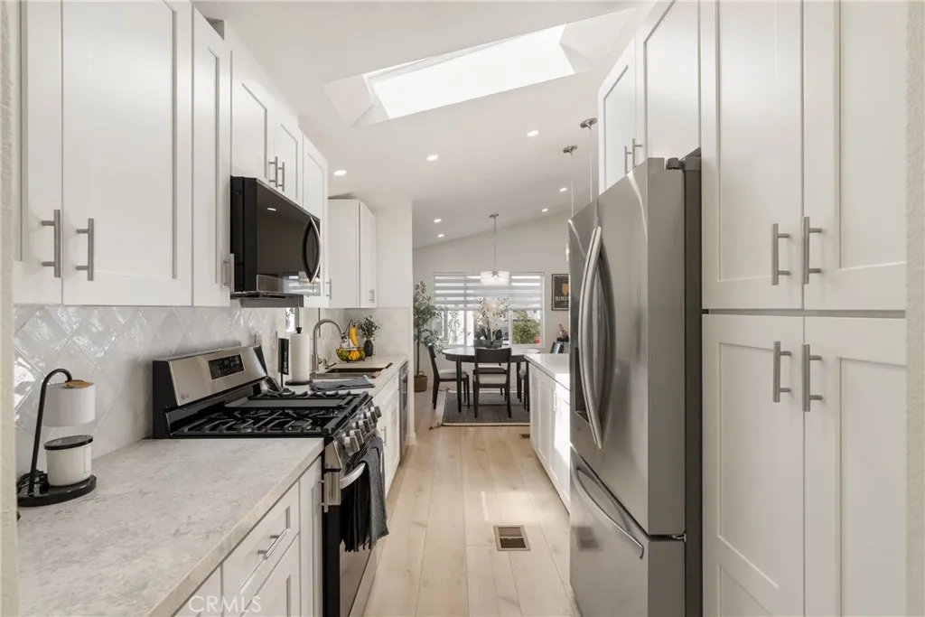 JUST BRING YOUR TOOTHBRUSH! EVERYTHING INCLUDED FULLYFURNISED BY PROFESSIONALDESIGNER (no art included) MOVE IN READY!Welcome to the beautiful seaside community of Bayside Village Mobile Home Community...the best kept secret of Newport Beach! Located in a landmark location in the heart of this famous beach town and offering a resort lifestyle for fractions of the cost of neighboring communities, sets this completely reimagined gem. A 2 bdrm, 2 bath manufactured home that evokes a modern beach living vibe from the moment you enter the home through the Dutch door. Impeccably designed with fine finishes such as Quartz counter tops and custom porcelain tile back splashes, level 5 smooth coat walls finished in crisp white, recessed lighting and beautiful laminate floors. Take advantage of the top of the line stainless steel appliances in the kitchen that also features a multi-seat island with a stainless steel farm skin creating great prep space for cooking and entertaining. Abundant natural lighting from the large windows and skylights across the open concept floor plan emits an ambiance of luxurious comfort making this home perfect for entertaining and personal enjoyment. The primary room overlooks the lovely landscaped backyard with an adjoining ensuite bath featuring a beautiful stand alone, porcelain bathtub, walk in shower with porcelain tiling and a double-sink vanity topped with quartz countertops. There is a plethora of storage throughout the home with custom cabinets and closets. This home also has air conditioning and a tankless water heater. Total sq ftg is 1128. Loc
