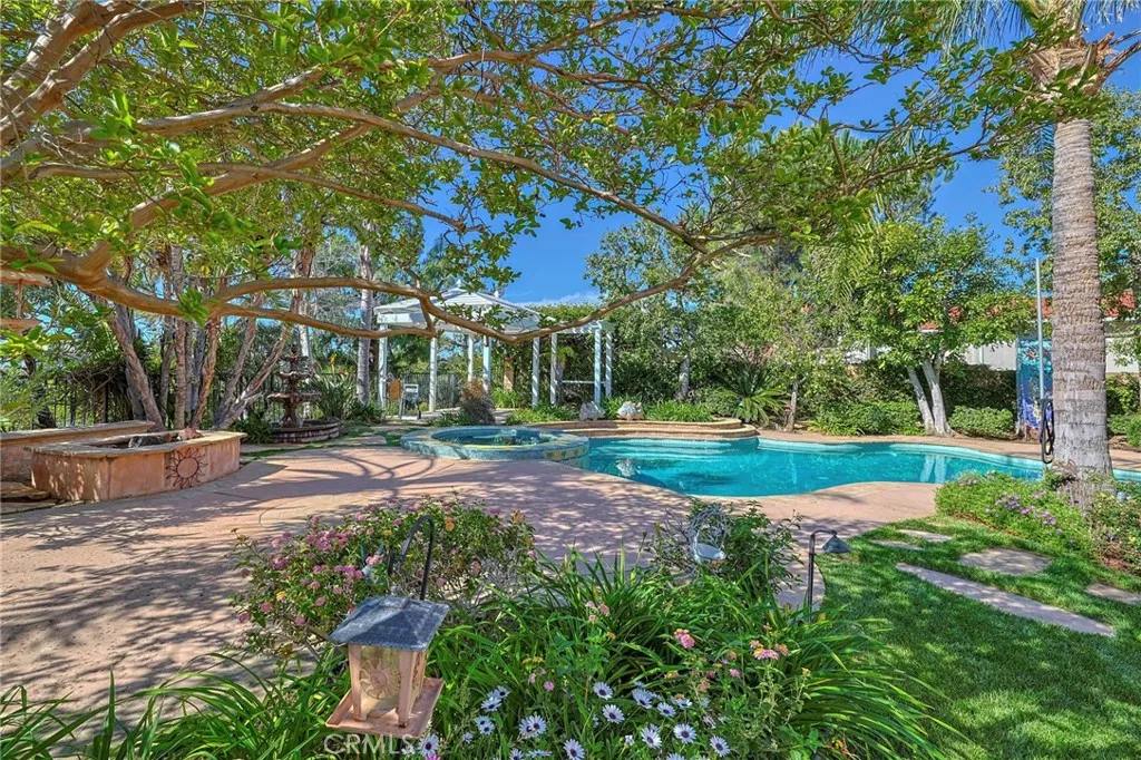 Located in the prestigious Canyon Crest neighborhood, this stunning home sits on an expansive ~16,124 sq. ft. lot and offers one of the most breathtaking backyards imaginablecomplete with a lagoon-style pool and spa, fire pit, inviting conversation area, gazebo, covered patio, and an outdoor kitchen with seating, all surrounded by lush landscaping with mature trees, fruit trees (lemon, fig, pomegranate, apricot, peach), and a thriving vegetable garden. A grand double-door entry with soaring vaulted ceilings welcomes you into a spacious living room and formal dining room, ideal for both everyday living and elegant entertaining, while the expansive island kitchen flows seamlessly into the family room with serene backyard views. The luxurious primary suite features vaulted ceilings, beautiful city light views, a spa-like en-suite bath with a separate tub and shower, and generous walk-in closets, and a convenient downstairs bedroom and bathroom make this home ideal for guests or multi-generational living. Additional upgrades include recently replaced A/C and heating systems for enhanced comfort and efficiency. Just a short walk to the HOAs private dog park and scenic hiking trails leading to Mission Peak in OMelveny Park, and located near top-rated schools, this home offers the perfect blend of lifestyle, comfort, and entertainment, while by night the backyard transforms into a magical retreat with accent lighting, fountains, a glowing pool and spa, and built-in surround soundtruly an entertainers dream.