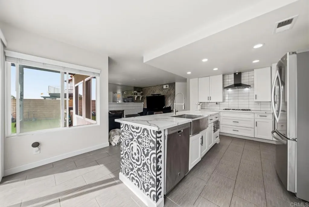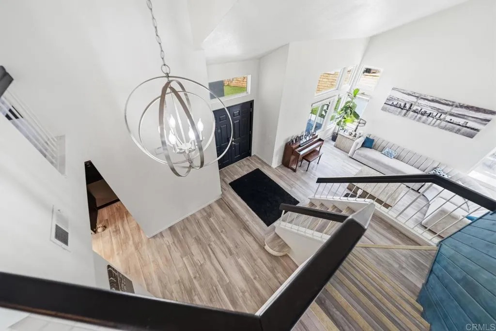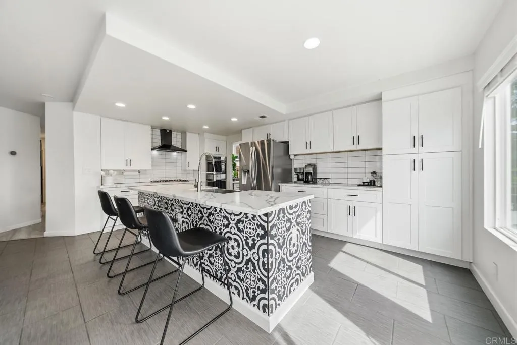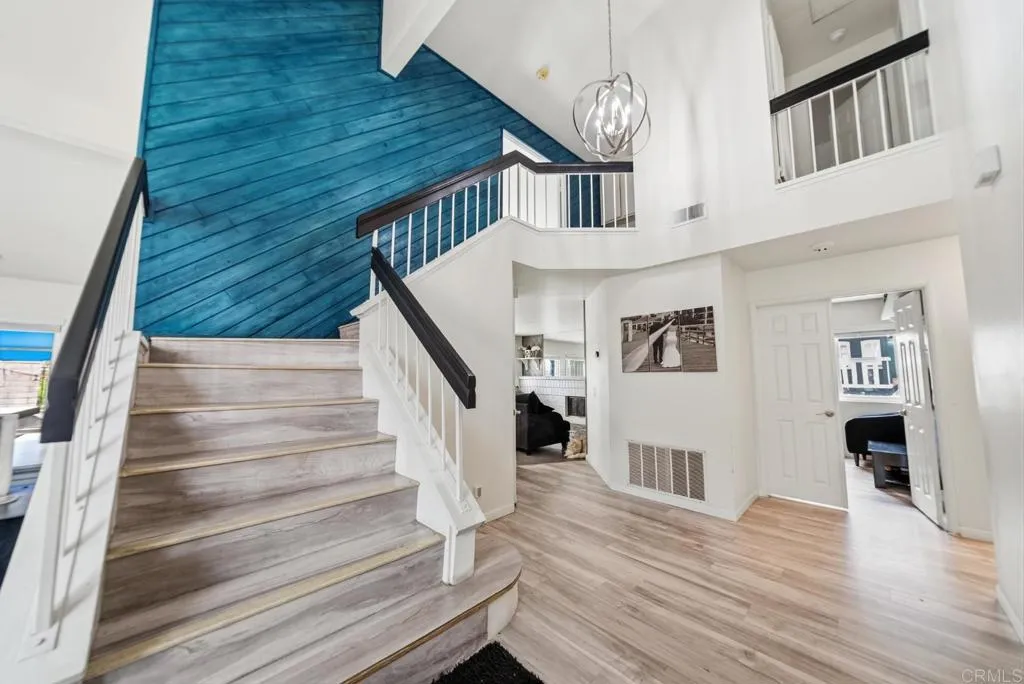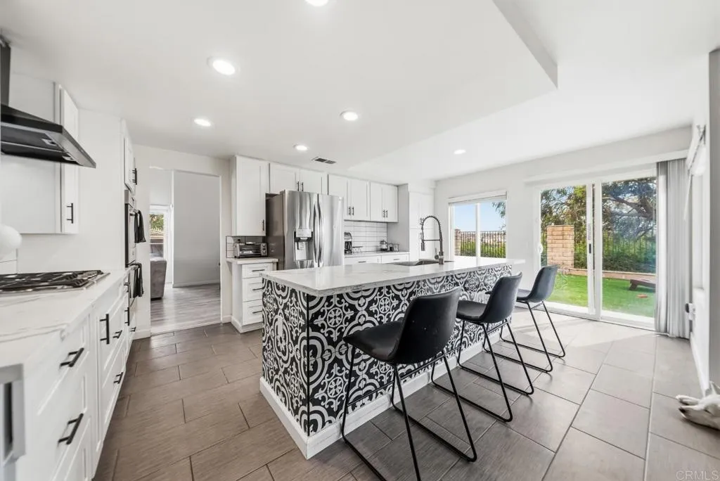 Welcome to a truly one-of-a-kind home where thoughtful design meets modern comfort. With over $180,000 in high quality upgrades, this beautifully remodeled residence is turnkey and ready to impress from the moment you arrive. Featuring a brand-new HVAC system, water heater, and a Level 2 Tesla charger, every detail has been carefully curated to provide both style and efficiency for todays homeowner. Step inside to discover an inviting open concept layout that seamlessly connects the kitchen and family room perfect for entertaining and everyday living. The home is filled with natural light, enhanced by soaring vaulted ceilings in the formal living and dining areas that create a grand yet welcoming atmosphere. Each room is uniquely finished with its own accent wall, adding character and a designer touch throughout. The versatile floor plan offers 4 spacious bedrooms and 3 full bathrooms, including a convenient downstairs bedroom complete with a pre-installed Murphy bed, ideal for a guest room or a home office setup. Upstairs, retreat to the primary suite where you can step out onto your private balcony and take in breathtaking mountain views stretching all the way to Point Loma. Outside is where this home truly shines. Designed with a rare U shaped layout, the expansive yard wraps around the home from corner to corner, creating the ultimate indoor/outdoor lifestyle. Enjoy brand new 360 degree concrete, low maintenance turf, and multiple spaces to relax, play, and entertain. Host unforgettable gatherings in your fully equipped outdoor bar and kitchen area, featuring two mounte