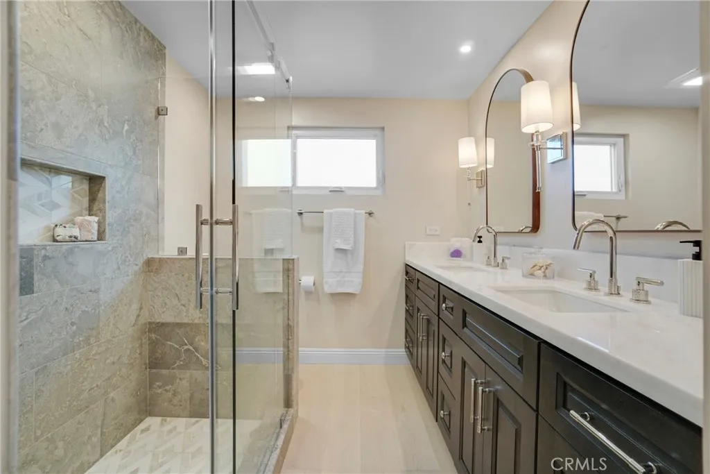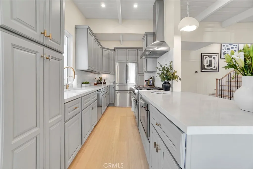 New to market in the coveted Tree Section of Manhattan Beach, Just minutes away from the beach, shopping and LAX. This beautifully renovated home is perched above the street, offering exceptional privacy and seamless indoor-outdoor living. Featuring 3 bedrooms and 3 stylishly updated baths, the flexible floor plan includes a formal living room and a spacious family room. The updated kitchen opens to the living and dining areas and features a breakfast bar, creating a bright, connected space for everyday living and entertaining. Designer finishes of all lighting, plumbing fixtures, cabinets, counters and flooring. French doors in the family room fully open to the oversized backyardrare for the areaeffortlessly extending the living space and bringing the outdoors in. The upper, private front yard offers a perfect setting for morning coffee or watching kids at play. Thoughtfully upgraded throughout with high-end finishes, the home also includes an oversized one-car garage with space for a gym, office, or creative use. The family room offers versatility to accommodate a fourth bedroom while maintaining functional living space. A rare opportunity to own a turnkey home with exceptional outdoor space in one of Manhattan Beachs most desirable neighborhoods.
