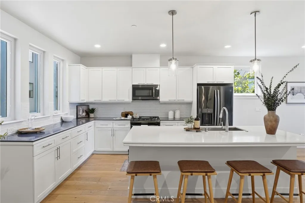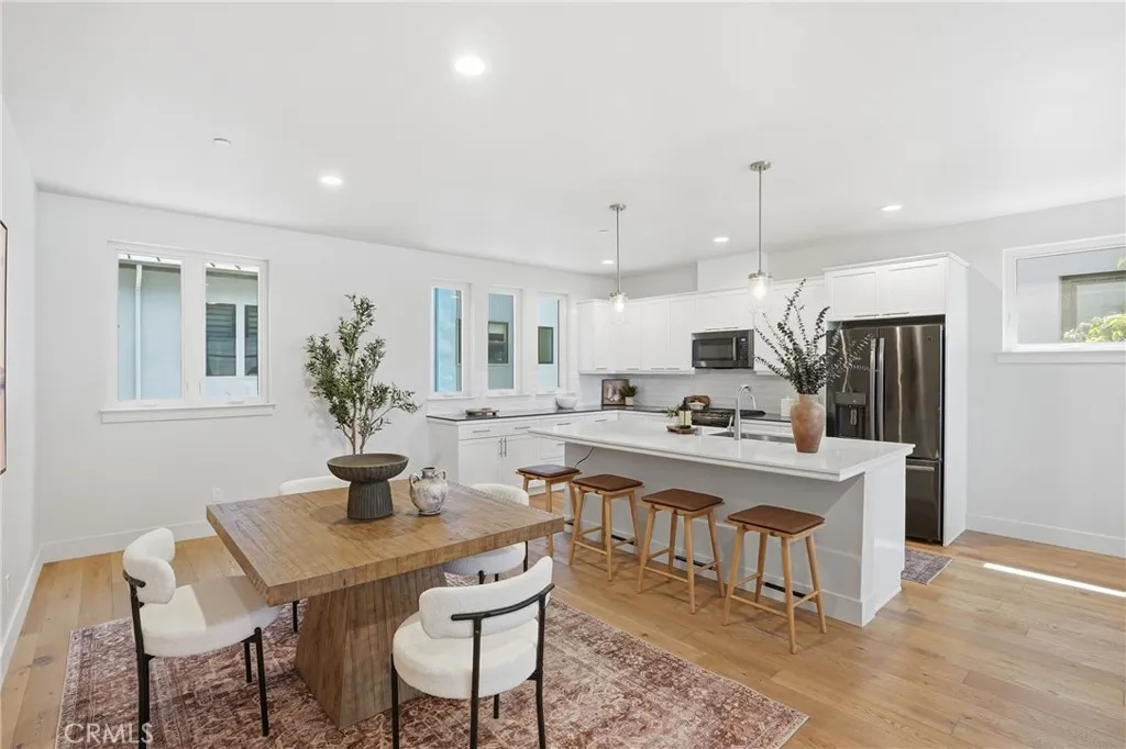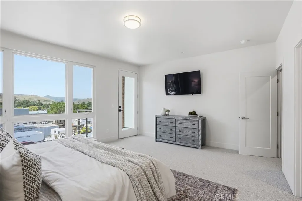 Welcome to 2460 Victoria Ave #104, a beautifully refreshed tri level end unit townhome in the heart of San Luis Obispo. This modern 2 bedroom, 3 bath residence blends thoughtful design, fresh updates, and effortless Central Coast living in the desirable Yard community. Step inside the ground level foyer, where stairs lead you up to the heart of the home. Ascending to the second story, you are greeted by an open concept living area featuring a spacious dining room and kitchen with modern finishes. The seamless flow opens directly to the living room and a private outdoor patio perfect for morning coffee, evening gatherings, or simply unwinding. Recessed lighting, abundant natural light, and a striking windowed garage style door to the balcony create a true downtown modern loft vibe. Your eye is immediately drawn to the inviting patio, ideal for al fresco dinners with friends and family as the sun sets over the South Hills. Continue up to the third floor, where both bedrooms offer ensuite bathrooms for ultimate privacy and convenience. The spacious master bedroom floods with natural light and features its own private balcony and ensuite bathroom with a walk in closet, your personal retreat for relaxing or enjoying SLO evenings. The second bedroom, also with an ensuite bath, sits on the opposite side of the home for added separation. Between them, you will find the thoughtfully placed washer and dryer in the hallway, making laundry a breeze without changing floors. Back down on the ground level, discover the versatile bonus room with its own private entrance and bathroom. This