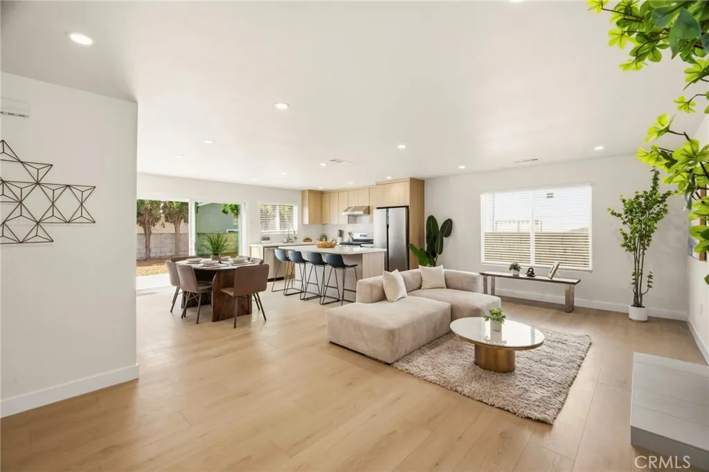 This beautifully upgraded residence in 2026 offers approximately 1,580 sq ft of living space, 3 bedrooms and 2 bathrooms with modern finishes throughout. The fully renovated kitchen showcases quartz countertops, custom cabinetry, and stainless steel appliances perfect for both everyday living and entertaining. Enjoy a bright and inviting living and dining area with upgraded flooring and recessed lighting. An additional office/flex space provides the perfect setup for working from home, a playroom, or a creative studio. The home also features central HVAC, an attached 2-car garage, and a spacious driveway with parking for two additional vehicles. Step outside to a generously sized backyard offering space for a POTENTIAL ADU (approx. 800 sq ft)ideal for extended family, rental income, or future expansion. Perfect for first-time buyers or investors, this move-in-ready home is conveniently located near parks, schools, shopping, dining, and major freeways, offering both comfort and accessibility. Dont miss this opportunity to own a fully upgraded home with added flexibility and future income potential in a desirable Santa Ana neighborhood!