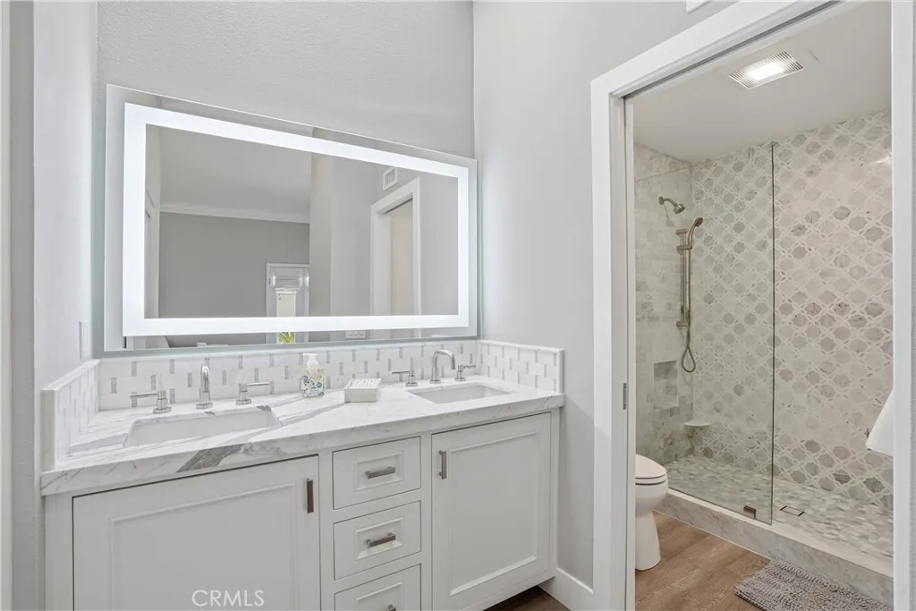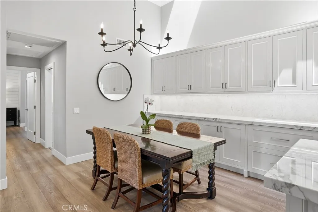 Completely reimagined with an uncompromising commitment to quality and craftsmanship, this highly upgraded single level home is located within the sought after gated community of Capistrano De Oro, where every detail has been thoughtfully curated to blend timeless Spanish style architecture with elevated modern finishes, creating a home that feels both refined and inviting, while the seamless layout and direct access two car garage offer effortless everyday living; filled with natural light and enhanced by multiple skylights in the kitchen, dining area, and primary bathroom, the open and inviting floor plan centers around a beautifully appointed kitchen featuring marble countertops, a custom backsplash, high end cabinetry, and all new appliances that connect seamlessly to the main living spaces, ideal for both daily living and entertaining; the primary suite offers a peaceful retreat with direct access to a private patio, perfect for morning coffee or evening relaxation, while both bathrooms have been meticulously upgraded with premium finishes; extensive improvements include full electrical upgrades, custom window enhancements, engineered hardwood flooring throughout, California Closets, recessed TV installation, and a pocket door for added functionality, along with a finished garage complete with upgraded flooring and added storage, all ideally located just minutes from shopping, dining, beaches, and convenient freeway access, offering the perfect blend of style, comfort, and location.