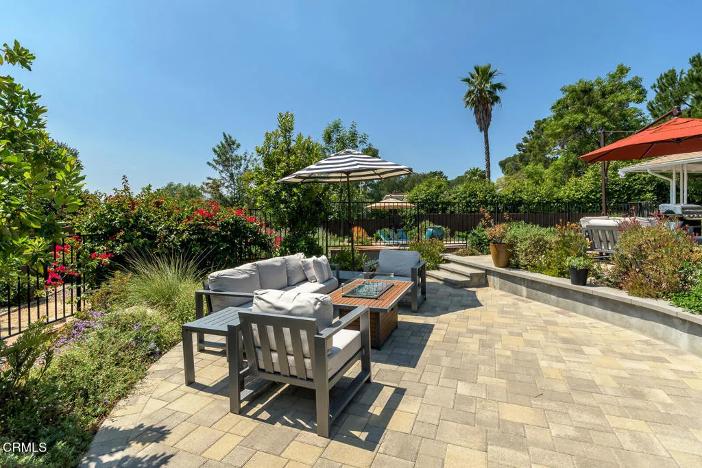 Discreetly positioned off Ocean View Boulevard, this meticulously curated estate offers a rare sense of scale and architectural clarity within one of La Canada Flintridge's most coveted enclaves. The property represents a significant land holding, comprising two distinct parcels that total over 40,000 square feet of private, park-like grounds. Upon entry, the home's intuitive lateral flow immediately draws the eye through the living spaces toward the verdant gardens and pool area, creating a seamless connection between the refined interior and the expansive outdoors.The residence is designed with a thoughtful separation of space, featuring a primary wing that serves as a quiet sanctuary. This suite is anchored by a dedicated sitting area and a generous walk-in wardrobe, with elegant double doors opening directly to the terrace. On the opposing side of the home, a versatile fourth bedroom provides the ideal proportions for a professional home office or a secluded guest retreat. The social heart of the house includes a modernized kitchen with a sun-drenched breakfast area, transitioning gracefully into a formal dining room and a living salon defined by vaulted ceilings, rich hardwood flooring, and the soft glow of natural light.The exterior grounds have been masterfully reimagined into a series of tiered outdoor areas, perfect for both intimate evenings and large-scale entertaining. A sophisticated social terrace with a gas fire feature overlooks the pristine, recently resurfaced pool, which is equipped with an integrated automatic cover for effortless maintenance. Beyond the