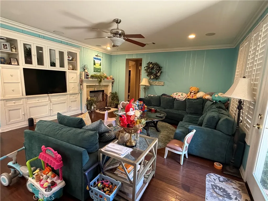 GOOD SCHOOL DISTRICT ! Stunning CUL-DE-SAC home with PAID SOLAR AND AN ELEVATOR; beautiful front yard; a sprawling front porch with French doors opening from the living room; the front door opens to hardwood flooring and into the living room offering a fireplace; crown molding throughout and plenty of windows allowing in natural light; continue through to a formal dinning room offering a crystal chandelier; flush surround speakers; and French doors to a cozy courtyard; built-in BBQ; the courtyard is also accessible from the kitchen which features updated cabinetry, granite countertops; a large center island with chandelier and seating; a breakfast nook; walk-in pantry; built-in desk; and is wide open to the family room; the family room also features hardwood floors; a built-in entertainment center; plantations shutters; ceiling fan; five surround speakers; elevator access upstairs a master bedroom with built-ins; surround sound; and elevator access; the remodeled master bathroom features dual sinks; a jetted tub with chandelier; custom walk-in shower with frameless glass enclosure; huge walk-in closet; and private bathroom; three additional bedrooms upstairs; one has its own suite bathroom and additional bedrooms with their own sink area connected with a jack & jill bathroom; the peaceful backyard features a covered patio; water features; a variety of landscaping on the hillside backdrop; and a grass area.