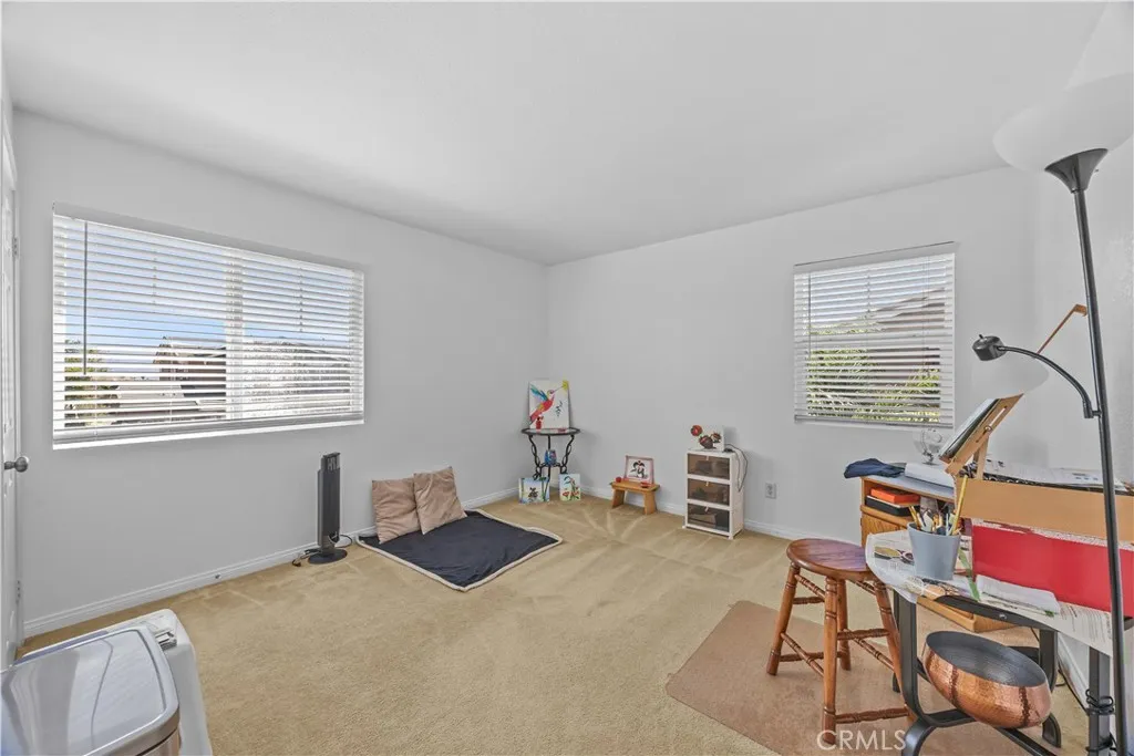 Stunning home located in the highly desirable Rosetta Canyon community, offering 5 bedrooms plus a den, 3 full bathrooms, and 1 half bath. The home was freshly painted in 2024 and features a brand-new furnace with all duct work recently replaced. Ideally situated just minutes from shopping, dining, Lake Elsinore, and the 15 Freeway, this home combines comfort with convenience. Upon entry, youre welcomed by a formal dining area with tile flooring that flows into a spacious open-concept layoutperfect for both everyday living and entertaining. The beautiful kitchen features sleek black granite countertops and ample space for cooking and gathering. All five bedrooms are located upstairs, including a generously sized primary suite with a large walk-in closet. The additional four bedrooms are all above average in size, with two also offering walk-in closets. The upstairs is fully carpeted and has been well maintained, presenting a clean and inviting feel throughout. Step outside to a private backyard retreat, complete with a fire-resistant covered patioideal for relaxing or entertaining year-round. The home also includes leased solar with a low monthly payment of $76, which the buyer will assume. This is a wonderful opportunity to own a spacious, well-maintained home in a sought-after neighborhood