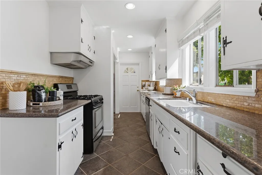 Discover the best deal in Sherman Oaks! This adorable two-story cottage features two bedrooms, two bathrooms, and a detached two-car garage with incredible ADU potential. The private gated yard, ringed with mature trees and a large, covered patio creates a perfect outdoor retreat, while the interior shines with new lighting and fresh paint. As you step through the front gate, you are welcomed by a home that feels like a private escape. The open living space has a beautiful bay window, brick fireplace and flows seamlessly to a sweet dining area with glass front cabinets. The bright kitchen has plenty of counter and cabinet space and opens up to a bonus area - a versatile space that could easily become a breakfast nook, your new favorite study or a secondary living area. Throughout the lower level, original hardwood floors add a touch of timeless character. The first level also features a bedroom and full bath - complete with new designer tile and a refinished tub. Upstairs, you'll find a charming loft areaa space just waiting to become a quiet sitting room or a dedicated workspace. Another bedroom and large bathroom with a tiled, walk in shower complete the 2nd story. Large windows throughout the home frame verdant views of the mature landscaping, bringing the beauty of the outdoors inside. Located just moments from Trader Joes and the Fashion Square Mall, you have the best of Sherman Oaks right at your fingertips. This is more than just a house; it is the peaceful, stylish home you have been searching for.