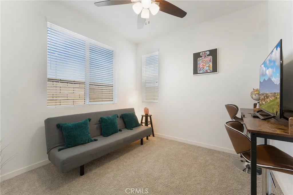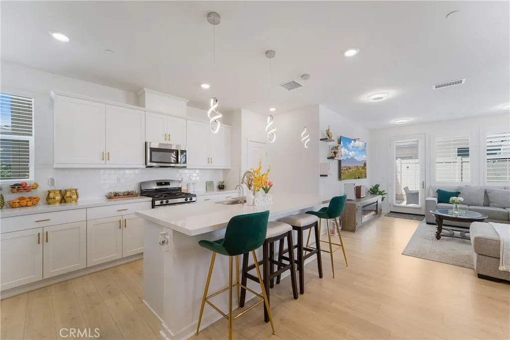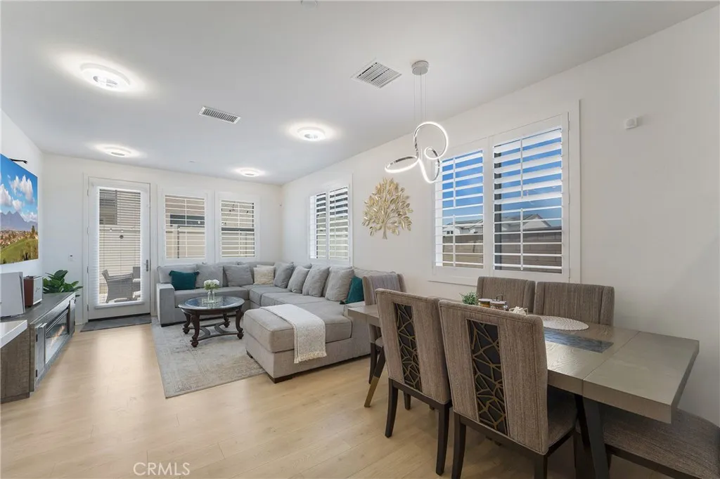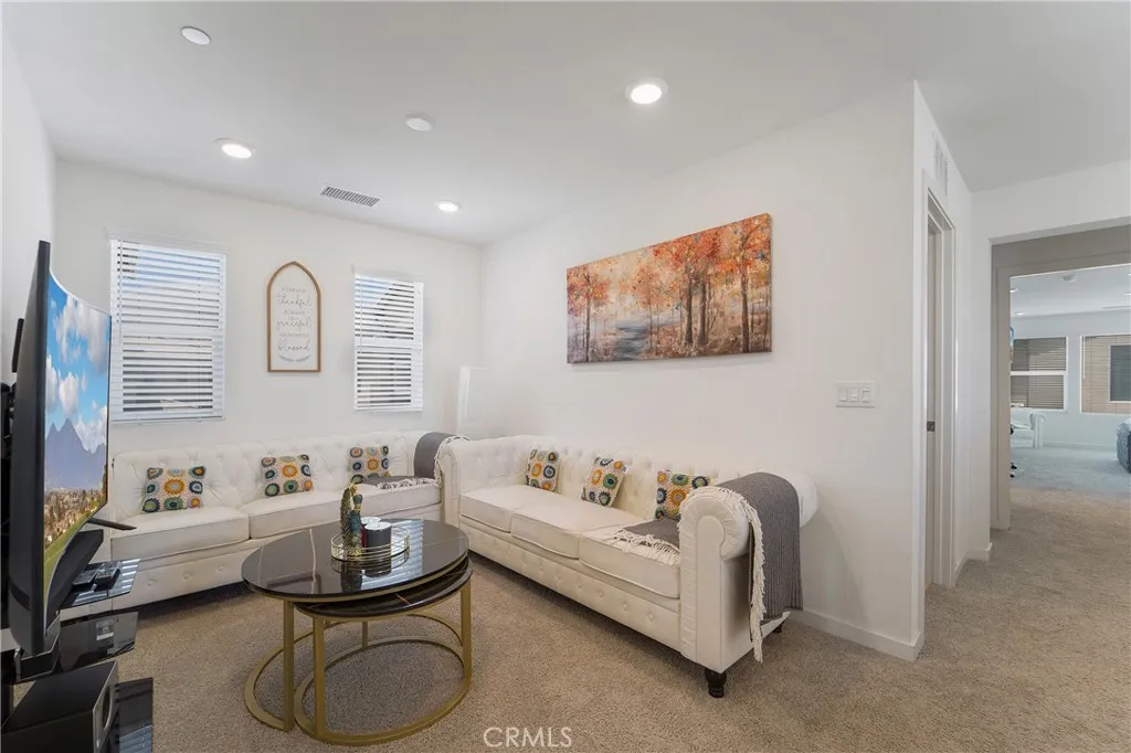 Beautiful owned-solar-powered home in the brand-new Serrano community of Corona. Plan 2 offers an open concept living, dining, and kitchen layout. The spacious kitchen is open to the large living area with window views to the landscaped back yard. Outside is your lovely finished back yard the perfect place to enjoy the beautiful California weather. A downstairs guest bedroom and full bathroom round out the main level. Upstairs is the Primary Suite with a large walk-in closet and spacious shower and soaking tub in the bathroom. Also located on the second floor is a roomy loft area, two secondary bedrooms and another full bath, and laundry room. Home amenities include an attached two-car garage, wood laminate flooring, water softener, the solar that provides lower electric bills, ceiling fans in all rooms, security cameras that can be transferred into the tenant's name, and quartz countertops. Serrano has a brand-new community pool, trails and parks, and is conveniently near great schools, shopping, restaurants, and freeway access.
