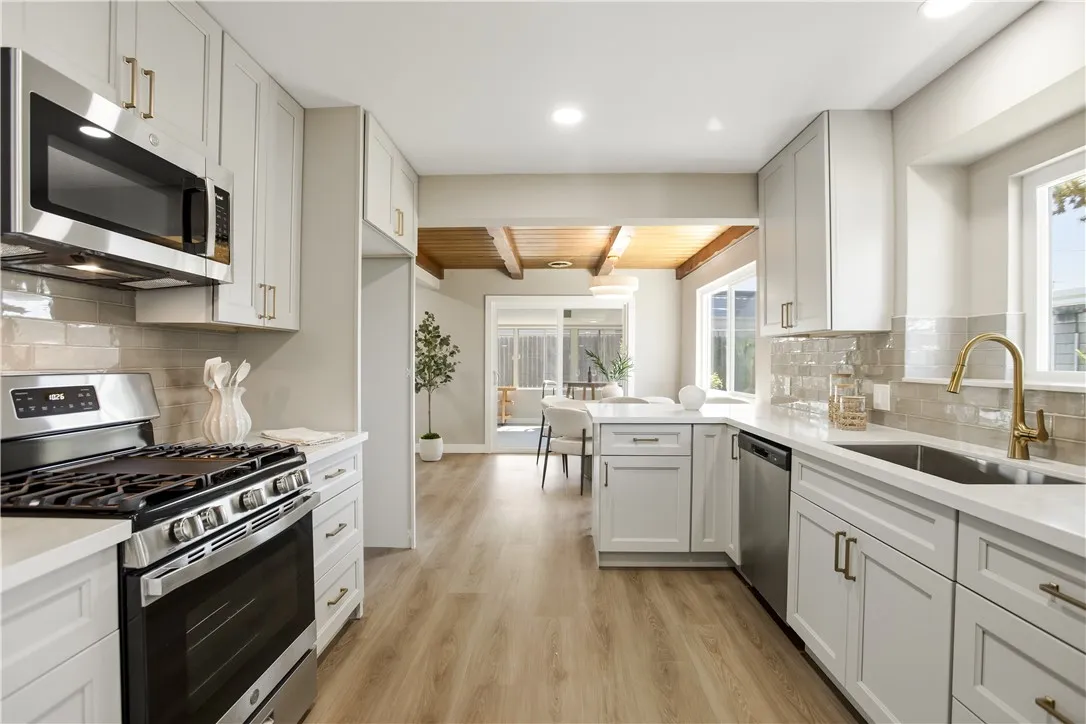 Welcome to 934 S Donna Beth Ave in West Covina a beautifully remodeled home that blends modern design with timeless comfort. From the moment you arrive, youll notice the fresh exterior, clean lines, and inviting curb appeal, complete with a spacious driveway and two-car garage. Step inside to an open, light-filled layout featuring wide-plank flooring, recessed lighting, and a seamless flow throughout. The stunning kitchen serves as the heart of the home, showcasing sleek cabinetry, quartz countertops, a designer backsplash, and a peninsula perfect for entertaining. The adjacent dining area with exposed beam ceilings adds warmth and character, while the expansive living room with a statement brick fireplace offers the perfect space to relax or host. The home continues to impress with two beautifully upgraded bathrooms featuring modern finishes, along with a spacious enclosed sunroom with its own heating system ideal for entertaining, a game room, or additional living space. This big 3-bedroom home has been thoughtfully upgraded throughout and is truly move-in ready, located in the desirable South Hills area of West Covina, close to schools, shopping, and dining.