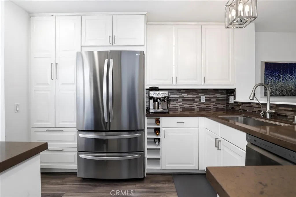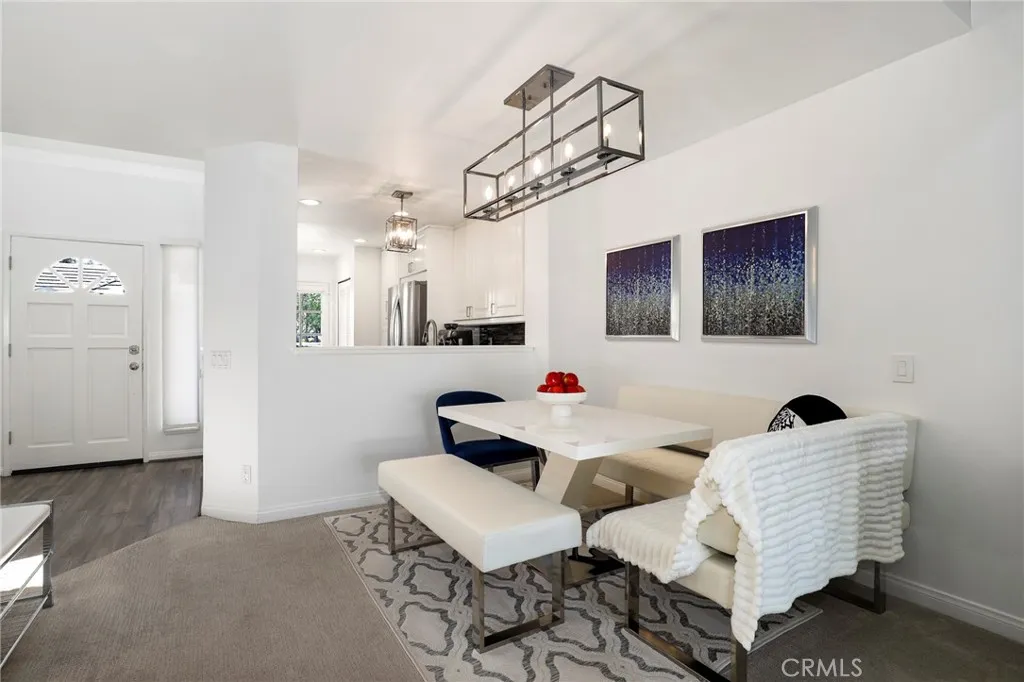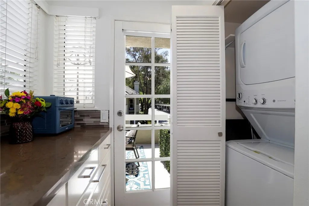 Welcome to this beautifully upgraded 2-bedroom plus loft home, filled with natural light and soaring vaulted ceilings. In addition to the two bedrooms, a spacious and versatile private loft offers the perfect space for a third bedroom, guest suite, office, or playroom, complete with its own oversized deck nestled among the treetops. The kitchen features stainless steel appliances, quartz countertops, white cabinetry, an in-unit washer and dryer, and convenient access to the front patio. The primary suite includes an upgraded ensuite bathroom with dual closets, a glass-enclosed marble shower, double vanities, and modern fixtures throughout. Enjoy exceptional outdoor living with three large decks, ideal for relaxing or entertaining. Additional highlights include a private garage with custom storage, a separate dedicated carport, and nearby guest parking. Ideally located in Valencia near top-rated schools, parks, paseos, easy freeway access, and a shopping center just across the street with dining, groceries, and more.