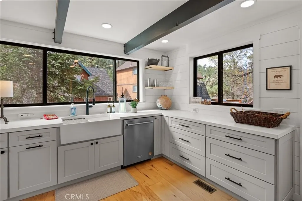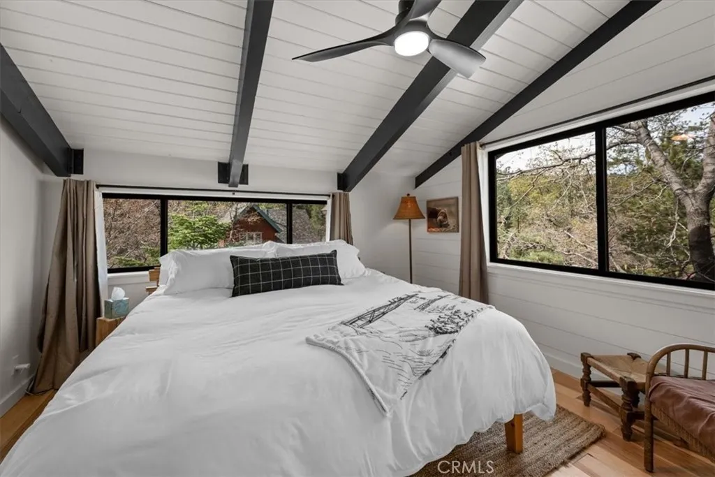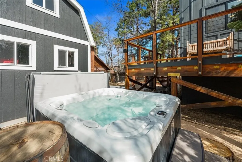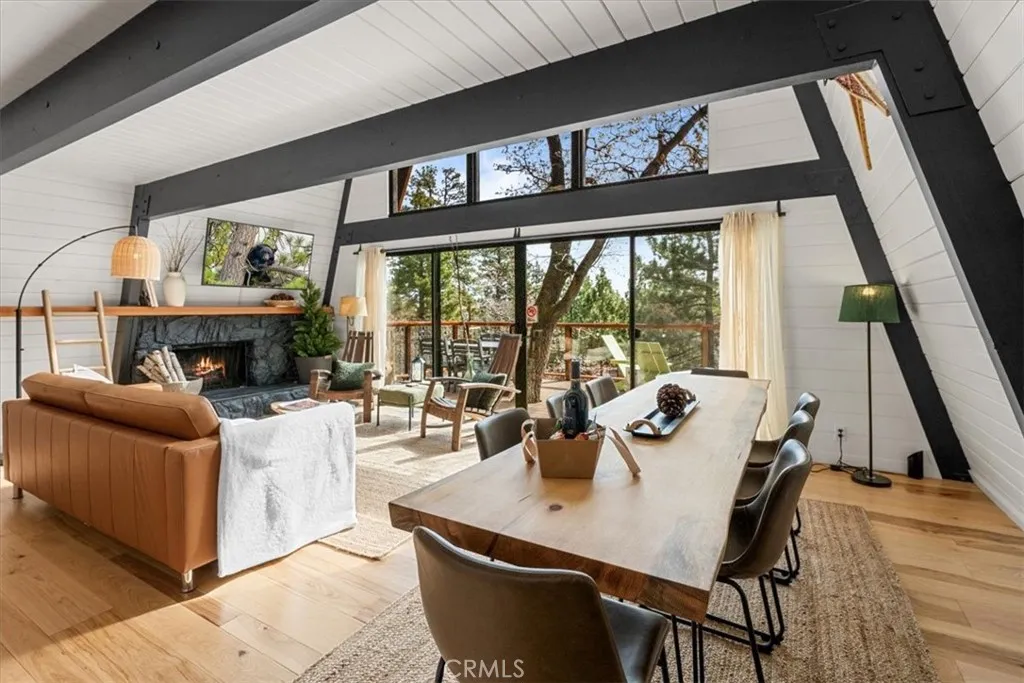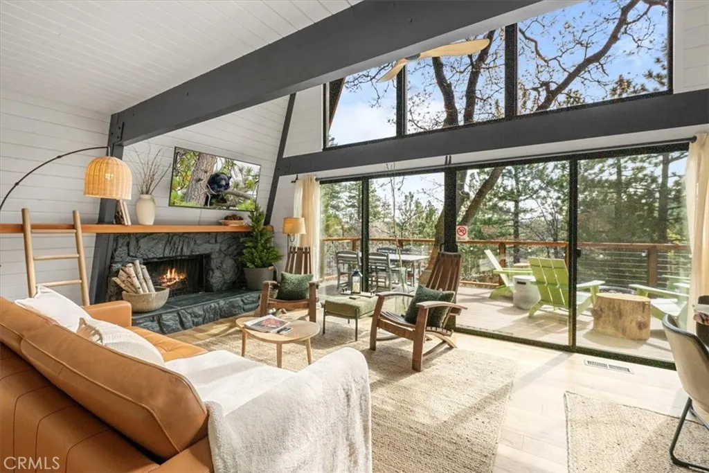Absolutely STUNNING remodel! No expense spared, everywhere you look you will see high end upgrades and materials, designer perfect. Plus: HUGE VIEWS!!! Amazing ALL- NEW Mountain retreat! Walking distance to the slopes! ... Ski Slope Views of Bear Mountain Ski Resort & Forest Views are abundant with this spacious oversized Gambrel Mountain Cabin. This stunning home features a 2-story wall of windows that force sunshine into the main living area. Massive all-new composite decking on 2 levels gives you endless options to enjoy the views and fresh mountain air! Enjoy breathtaking sunrises as you enjoy your morning coffee by the fireplace. This custom home affords 2 bedrooms, 3 bathrooms plus a sleeping loft used as a third bedroom, plus TWO living rooms! Don't miss the stainless-steel appliances in the kitchen, farm sink, wood beam ceilings and native stone fireplace in the living room. This fabulous home is literally all new: Kitchen, bathrooms, fixtures, paint, walls, floors, ceilings and solar are all new. Lot features plenty of parking and a spacious rear yard that includes Tuff-Shed and bubbling spa. This gorgeous home is walking distance to the best skiing, snowboarding, golf, hiking and biking trails, not to mention a short distance to the Lake and Village for Restaurants and Shopping. Excellent location for the nature enthusiast in you and ready for this season's enjoyment...this one is stunning, loaded with upgrades and a must-see!!! Don't miss our 3-D tour and list of upgrades, we can forward copies of both, just ask.