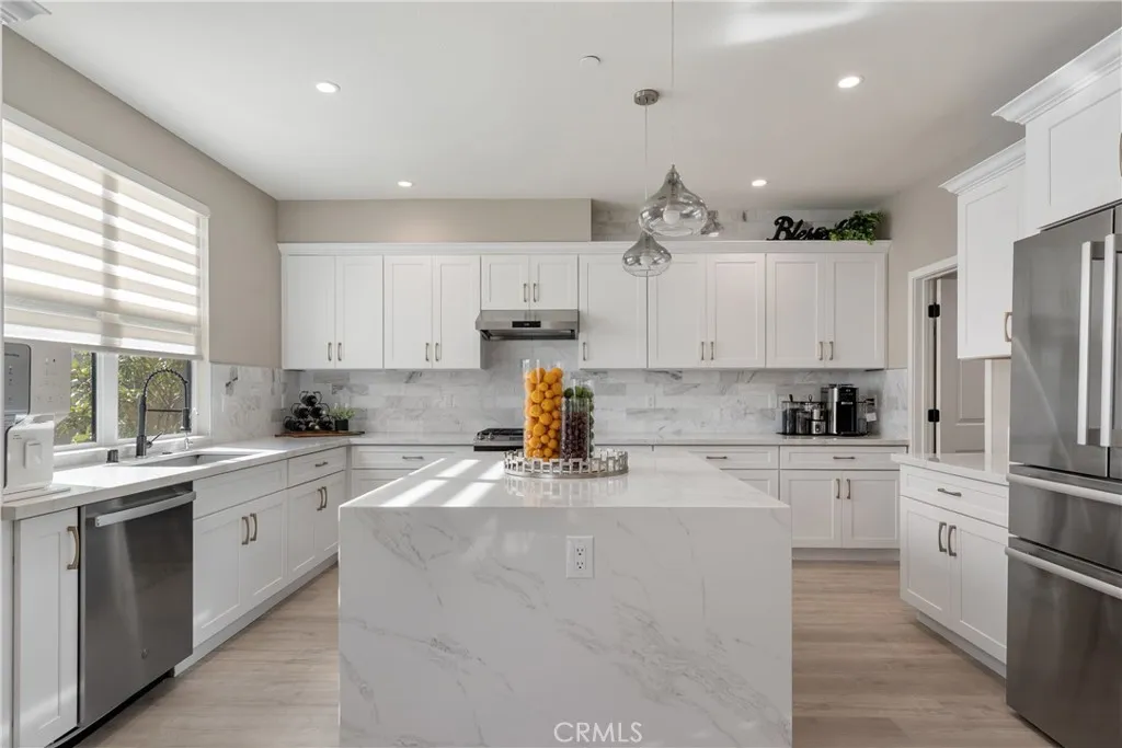 Welcome to 355 S Cypress Street. Located in the beautiful city of La Habra! It's the Largest floor plan in the community. High ceilings throughout the home makes the entire condo feel extra spacious. Numerous windows throughout which allows for natural light. Wonderful kitchen opens to an enormous dining room. Kitchen has soft closing drawers and cabinets. Large kitchen with quartz countertop and a large waterfall island. Brand new appliances (dishwasher, stove, microwave). Vinyl Flooring throughout. Large First Floor Suite with Den. Enormous Great Room. Two Bedrooms and Loft upstairs. Primary Bedroom has two closets. Primary Bathroom has dual sinks and walk in shower. Balcony/Deck on Third Floor has panoramic view of the neighborhood and hills. Large Laundry Room. 2 Car Direct Access Garage. Solar panels help lower electricity bill. Community has numerous guest parking and BBQ/Picnic area. Conveniently located near restaurants, shopping centers, markets, schools, parks, and more. Easy access to the 57, 5, and 91 Freeways. The homeowner is an interior designer. Over $150,000 in home upgrades, including Italian porcelain accents throughout. Pictures just do not capture the fine detail and craftsmanship!