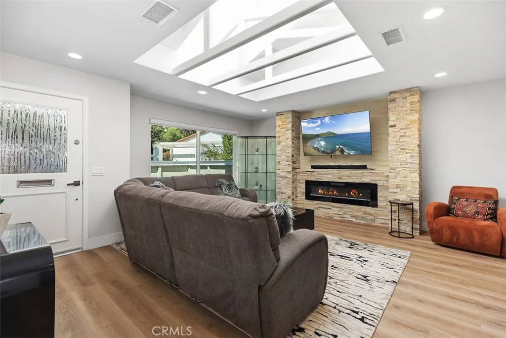 Welcome to this impeccable, turnkey home in the heart of Laguna Woods Village. Beautifully remodeled from the ground up, this single-level residence with an oversized two-car garage exudes luxury, comfort, and style. A spacious, beautifully landscaped entry courtyard with custom tile creates a warm and inviting first impression. Inside, the home is filled with natural light, enhanced by an elevated ceiling in the living room and thoughtful architectural details, including a custom fireplace. From the moment you enter, youre drawn to the serene views showcased through the enclosed, double-insulated patioperfect as a formal dining room, sitting area, or extended living space. A sliding glass door opens to an additional outdoor retreat, creating seamless indoor-outdoor living ideal for entertaining. The gourmet kitchen is designed to impress, featuring custom cabinetry, quartz countertops, high-end appliances, and a large center island that offers ample space for gathering and meal preparation. This home offers three generously sized bedrooms, including a stunning primary suite that serves as a private retreat. The en-suite bathroom features a dual-sink vanity, oversized shower, premium fixtures, and a walk-in closet. Additional highlights include a spacious two-car garage with finished drywall, epoxy-coated flooring, recessed lighting, a utility sink, a washer/dryer, and abundant storage with a pull-down ladder. This is a great home to make your own! Conveniently located between gates 7 and 9. Add all of this to the amenities offered by Laguna Woods Village. You have a winnin