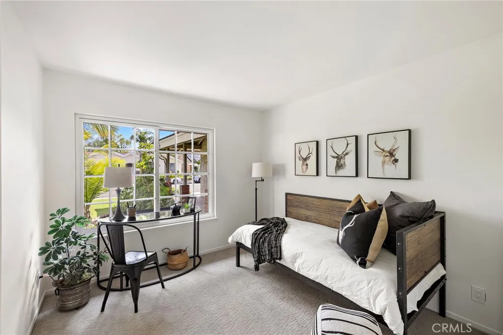 Tucked away on a quiet cul-de-sac street, this beautifully maintained single-story residence offers the perfect blend of comfort, style, and privacy. Featuring three bedrooms and two full bathrooms, the home sits on a generously sized lot with no rear neighbors, creating a peaceful and secluded setting. Step inside to discover an inviting, light-filled interior enhanced by soaring vaulted ceilings and an expansive living room anchored by a cozy brick fireplaceideal for relaxing or entertaining. The main living areas are adorned with stylish wood-look vinyl flooring, offering both durability and modern appeal, while the bedrooms provide a soft retreat with brand-new plush carpeting. The thoughtfully upgraded kitchen showcases elegant granite countertops and ample space for cooking and gathering, seamlessly connecting to a versatile family room or formal dining area to suit your lifestyle. Sliding glass doors open to an oversized backyard oasis, complete with mature landscaping, a spacious patio perfect for entertaining, and abundant room to play, garden, or unwind. Ideally located within walking distance to the Gateway Centers shops and restaurants, as well as nearby El Dorado Park, this home also offers convenient access to Montevideo Elementary School and the amenities of Lake Mission Viejomaking it a truly exceptional place to call home.