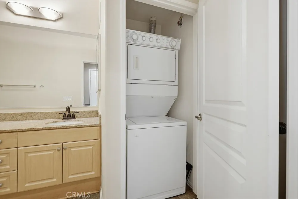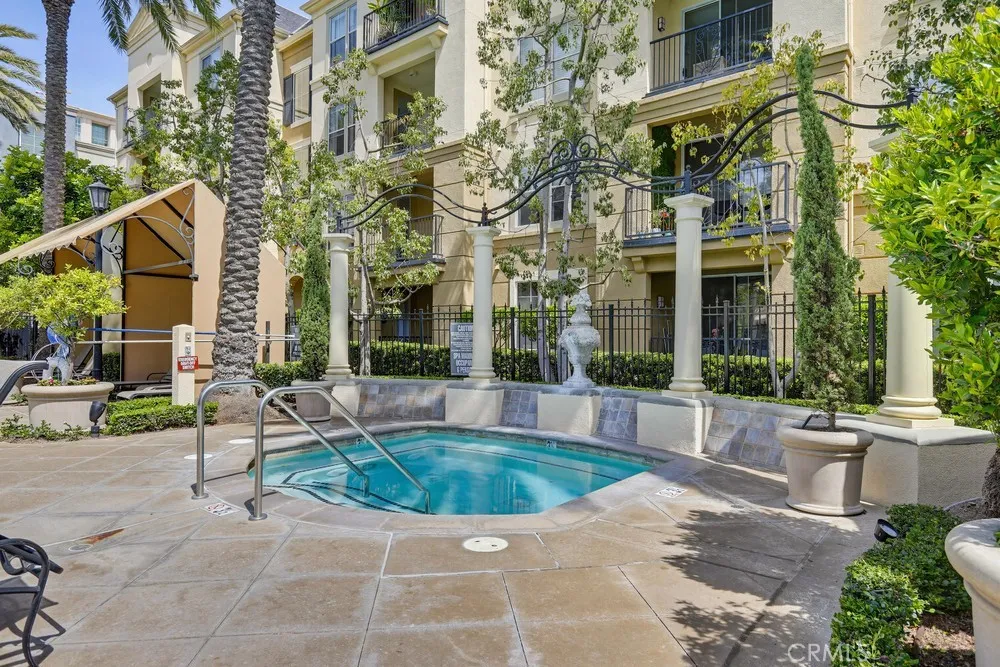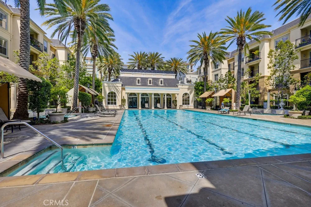 Top-floor opportunity in the highly sought-after Watermarke community in Irvine! Experience resort-style living ideally located near the airport, freeways, shopping, dining, and major business centers. This desirable 1-bedroom plus spacious den offers a versatile layout, perfect for a home office or flex space. The open floor plan provides seamless flow, with the kitchen opening to the dining and living areas, creating a bright and inviting living space. The bedroom features a walk-in closet, while the bathroom offers dual sinks for added comfort and functionality. Youll also find in-unit laundry conveniently located in a closet. Enjoy a spacious private balcony with beautiful courtyard and pool views, perfect for relaxing or entertaining. Located within a gated community, this unit includes two parking spacesa rare and valuable feature. HOA dues cover water and trash. Residents enjoy an array of resort-style amenities including a clubhouse, pools, spas, fitness centers, BBQ areas, tennis courts, and a basketball court.