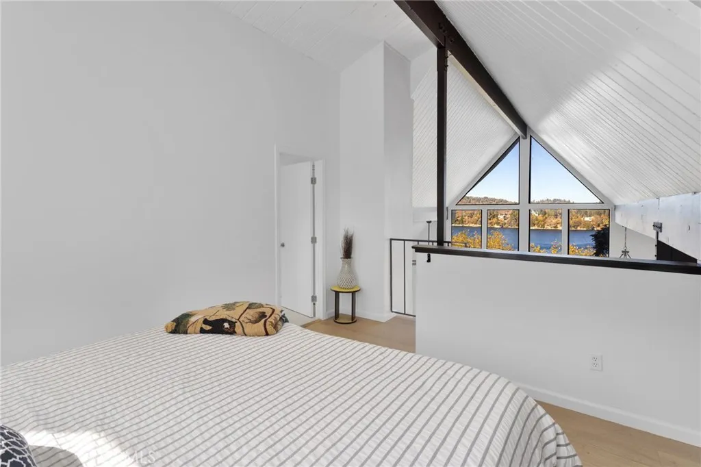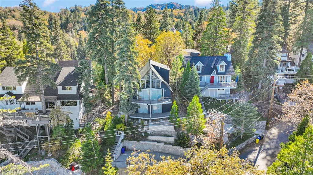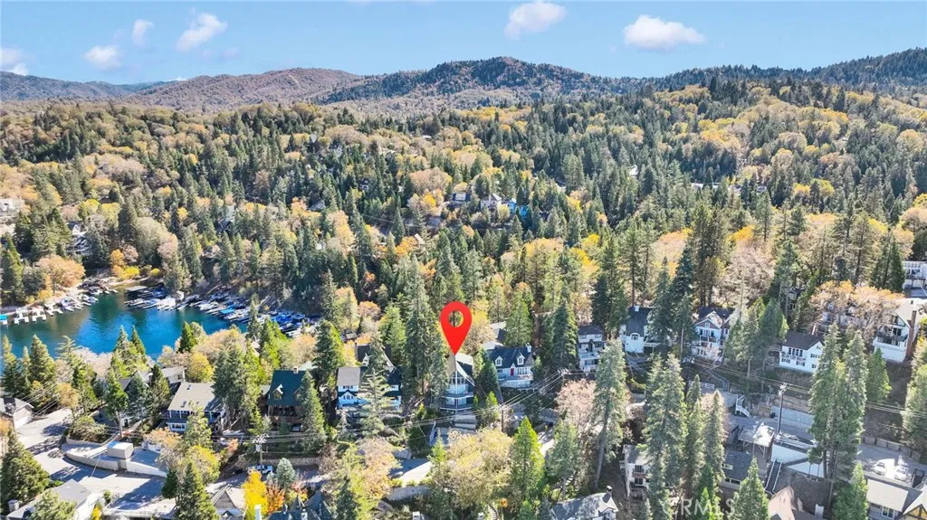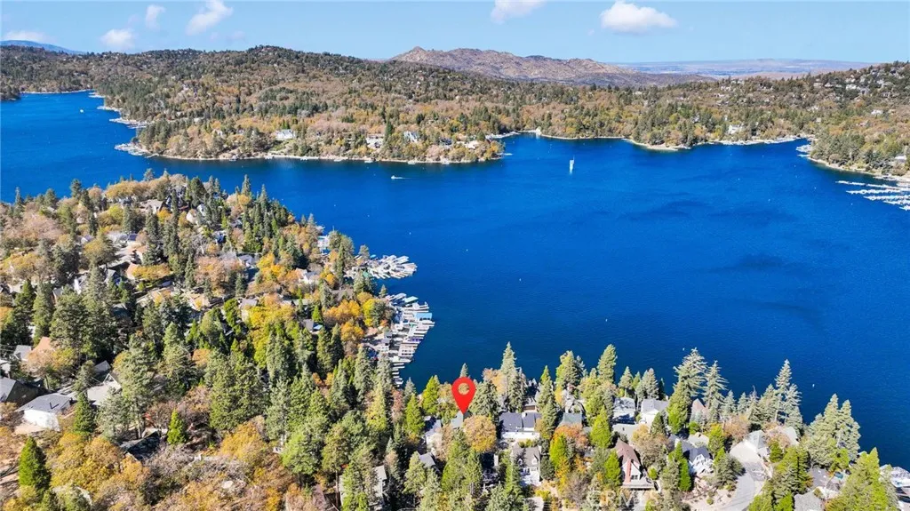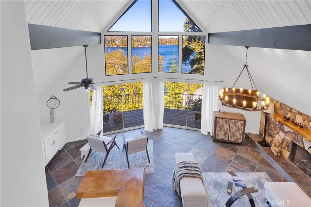 Welcome to 28919 Palisades Dr, Lake Arrowhead, CA 92352 a fully furnished, recently updated first-tier stunner with amazing lake views! This beautifully remodeled mountain retreat offers approximately 2,016 sq ft of light-filled living space with 3 bedrooms, 2.5 baths, and multiple entertaining areas. Located just across the street from the lake with nearby lake access, youll enjoy full lake rights stroll along the scenic lake trails, launch your boat or kayak, or take a refreshing swim in the crystal-clear waters. From the moment you step inside, youll be captivated by the open-concept design, dramatic wall of windows, and soaring wood-beamed ceilings that frame the breathtaking lake views. The spacious living room centers around a stunning stone fireplace, creating a perfect setting for cozy mountain evenings while still enjoying the view of the water. The beautifully updated kitchen is a chefs dream, featuring new stainless steel appliances, a modern oven hood, custom cabinetry, and a breakfast bar that opens seamlessly to the dining area and living room. Whether youre entertaining or relaxing, this level is designed for comfort and connection. Step outside onto one of two expansive decks to take in the spectacular views watch boats drift by, soak in the fresh mountain air, and revel in the glowing sunsets over the water. Also on the main level are two nicely sized bedrooms with large closets and an updated full bath featuring modern finishes. The private master suite occupies its own level and is a true sanctuary. It features soaring ceilings, serene lake views, and