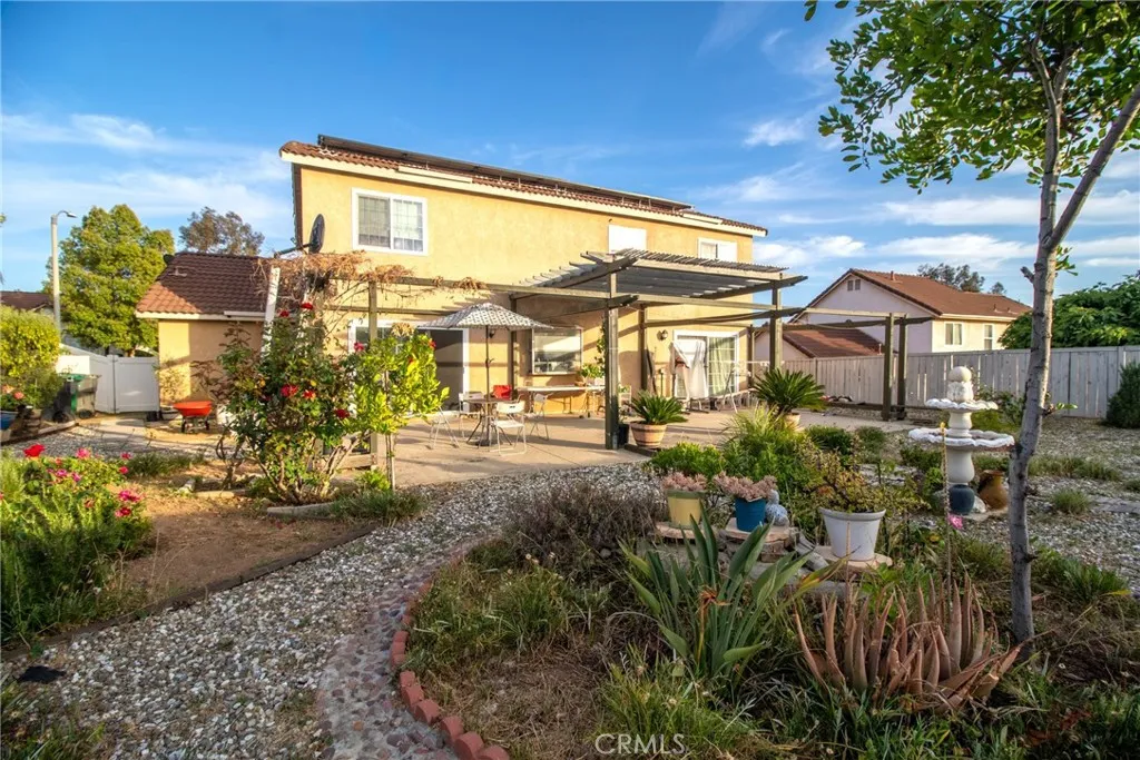 Located in one of Moreno Valleys most desirable communities, Sunnymead Ranch, this charming 4-bedroom 2.5-bath home offers over 1,700 square feet of comfortable living space. Featuring a versatile floor plan and a generously sized lot with vinyl fencing in both the front and back, this property presents a wonderful opportunity to make it your own in a highly sought-after neighborhood. Inside, youll find a spacious living area centered around a cozy fireplace, complemented by elegant custom drapery and a stunning chandelier that brightens the entire room. The kitchen has been tastefully remodeled with new tile flooring, updated cabinetry, and granite countertops, creating a stylish and functional space for everyday living. Hardwood flooring extends throughout the downstairs, staircase, and upper level, while the primary suite and upstairs bathrooms have also been thoughtfully updated. With ample parking and a rare 3-car garage, this home offers both convenience and practicality. Step outside to a backyard designed for relaxation and entertaining, complete with a covered patio and garden features. The location truly sets this home apartwithin walking distance to Sugar Hill Elementary School, conveniently north of the 60 Freeway, and just minutes from shopping, dining, and UC Riverside, making it especially appealing for commuters and students alike. Residents of Sunnymead Ranch enjoy access to exceptional amenities, including a pool and spa, clubhouse, fitness center, basketball and tennis and Pickleball courts, playground, and a scenic lake for fishingall with a low HOA. Thi