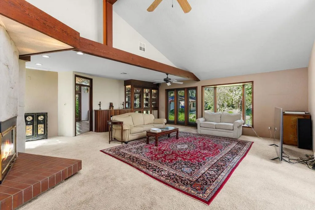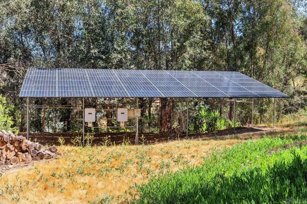 Private and secluded, this gated Valley Center estate offers a peaceful retreat surrounded by lush, mature landscape. Set on expansive, usable grounds, the property is a true sanctuary featuring a variety of fruit trees, a tranquil fish pond, and seamless indoor-outdoor living. The 2,860 sq. ft. single-story residence is complemented by a 720 sq. ft. detached guest house (ADU) with two bedrooms, one bath, and a full kitchen, ideal for extended living or added flexibility. Outdoor amenities include an in-ground pool and spa, goldfish pond, three-car garage, and a 32' x 16' workshop or storage barn. The grounds are rich with agricultural appeal, including five avocado trees and an assortment of apricot, peach, plum, pear, apple, grapefruit, and orange trees. A producing well supports the property, alongside a solar energy system for added efficiency. The roof was replaced in 2023. Home is on a well but can access Valley Center water if desired. Solar lease was pre-paid until 2034 but lien now released see Documents. Two Propane tanks, one for main house and one for guest house. Inside, the home features custom mahogany built-ins, doors, and windows, along with a central atrium that fills the space with natural light. The kitchen opens to a bright breakfast area with a distinctive Hawaiian lava rock fireplace. Additional highlights include multiple fireplaces, a spacious living and dining area for entertaining, and a dedicated office or den. The fully fenced and gated property offers ample parking, including space for an RV, and a rare amount of flat, usable land, all while be