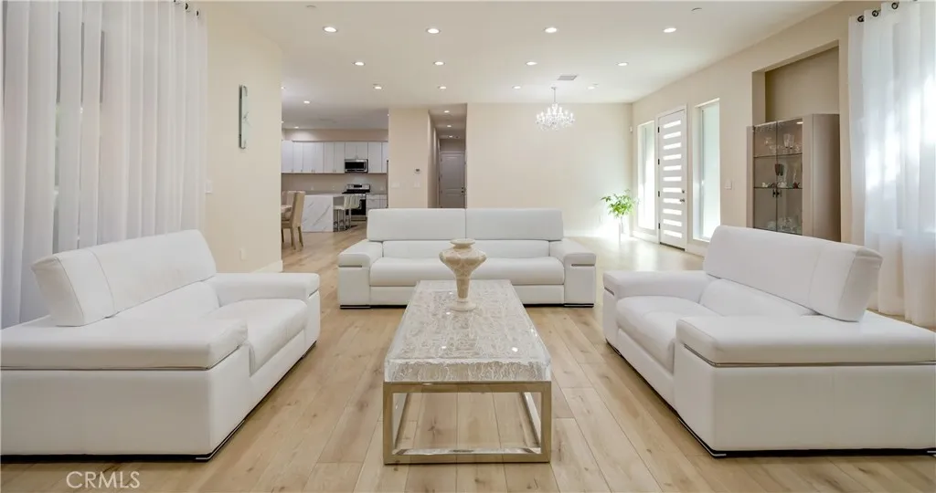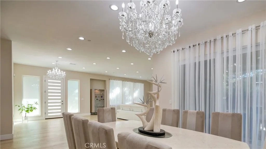 This architectural masterpiece, defined by sophisticated design and modern luxury, was featured in HAVEN magazine. Located in the prestigious Verdugo-Woodlands area of Glendale, this contemporary two-story single-family home offers serene mountain views and an elevated lifestyle. The residence features 4 bedrooms and 5 bathrooms across a total living area of 3,264 sq. ft. (per plans): 1,747 sq. ft. on the first floor and 1,517 sq. ft. on the second. Designed for luxury living, the home boasts an open floor plan, a spacious living room with a charming gas-burning fireplace, a wall of glass that floods the space with natural light, and 10-ft ceilings on the first floor. Wide-plank flooring flows throughout, and the formal dining room opens onto a large private patioperfect for breakfast in the morning. The seamless integration of the kitchen, dining area, living room, and expansive outdoor patio makes this home ideal for hosting gatherings of any size. The open gourmet kitchen features modern stone countertops, a center island, and a breakfast area. One bedroom with an ensuite bathroom is conveniently located on the first floor, while the remaining bedroomsincluding the exquisite master suiteare upstairs. The master suite offers a huge walk-in closet and an oversized bathroom with a tub, steam shower, and vanity cabinets. Additional highlights include energy-efficient features (tankless water heater, LED recessed lights), a large laundry room, access to an attached finished two-car garage with 220V outlets for EV charging, two A/C units for separate floor control, steel-reinf